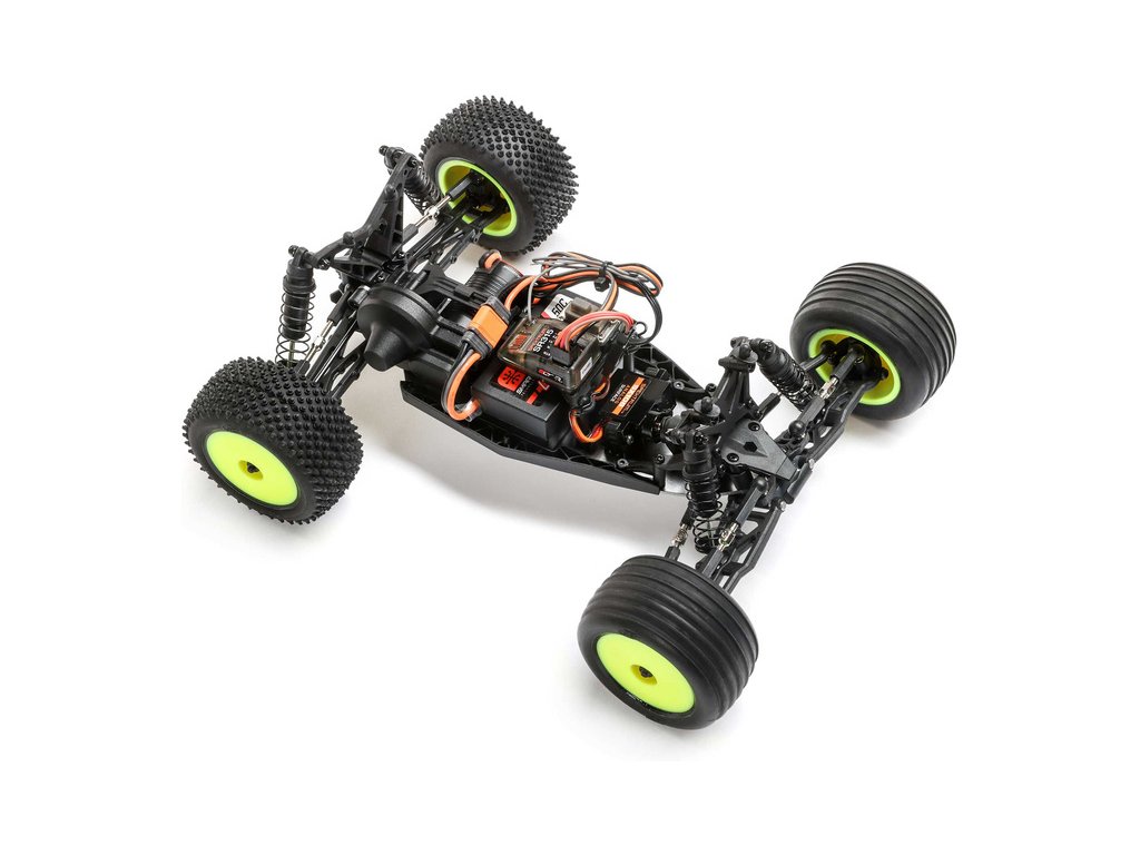 S autem Mini-T 2.0 BL V2 můžete závodit na zahradě nebo venku v terénu. Nenáročný a skladný model pro zábavu s přáteli, model má proporcionální ovládání, řízení je v modelu zajištěno mini servem Spektrum se servo-saverem na výstupní hřídeli, k ovládání je přiložen vysílač Spektrum SLT v pásmu 2,4GHz a voděodolný 3kanálový přijímač SR315 DSMR/SLT 3CH. Model pohání výkonný motor Firma® 6000Kv s integrovaným regulátorem. Mini-T 2.0 V2 je vybaven kuličkovými ložisky, která zvyšují výkonnost díky snížení tření hnacího ústrojí. Motor je ve středovém uspořádání pro lepší vyvážení, pro maximální traxi mají zadní pneumatiky kolíkový dezén, zatímco přední mají drážkovaný dezén pro lepší vedení směru.