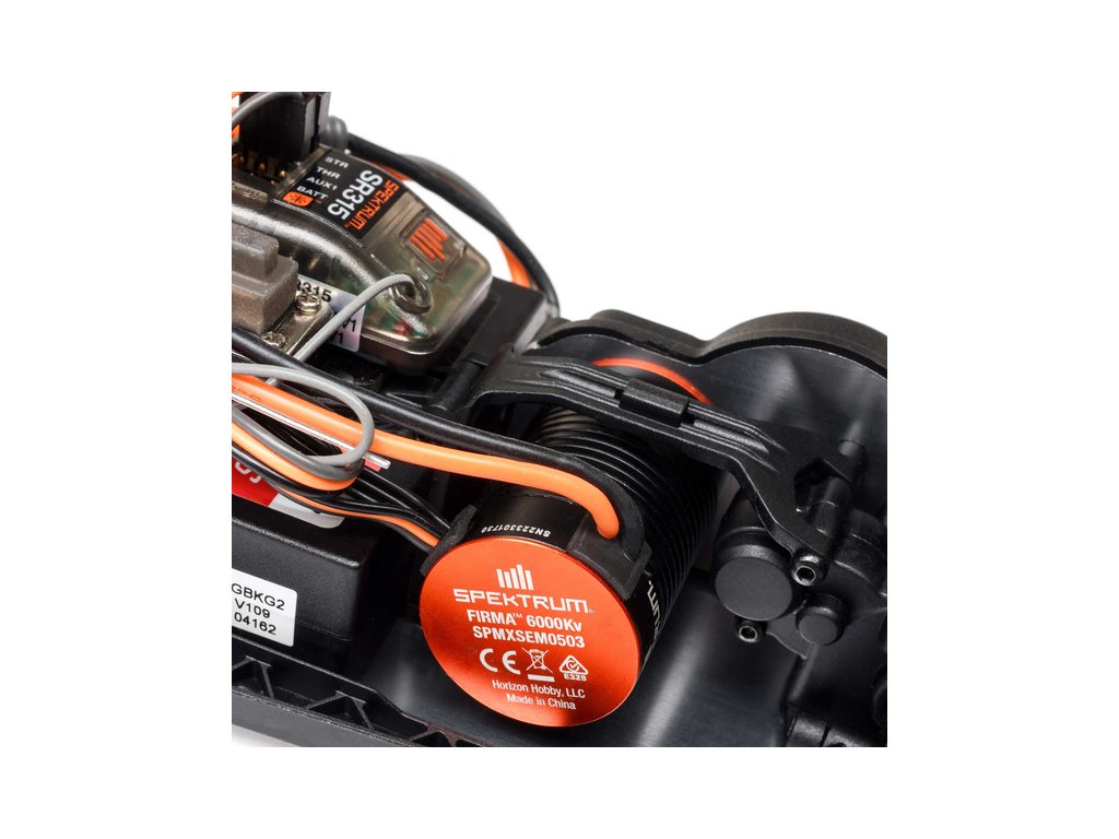 Kromě ovládání bez rušení nabízí přiložený vysílač Spektrum SLT2 2,4 GHz mnoho užitečných funkcí včetně trimu řízení, rychlosti řízení a couvání. S omezovacím přepínačem plynu mohou začátečníci omezit rychlost z 50 % na 75 % až 100 % – ideální pro postupné a bezpečné učení se dovednostem ovládání.