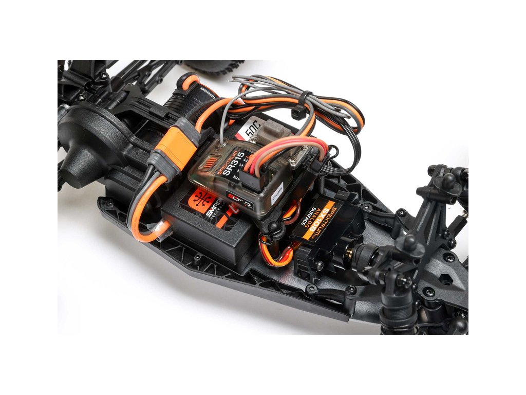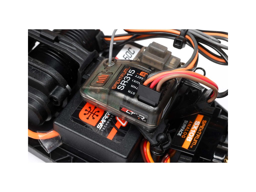 Kromě ovládání bez rušení nabízí přiložený vysílač Spektrum SLT2 2,4 GHz mnoho užitečných funkcí včetně trimu řízení, rychlosti řízení a couvání. S omezovacím přepínačem plynu mohou začátečníci omezit rychlost z 50 % na 75 % až 100 % – ideální pro postupné a bezpečné učení se dovednostem ovládání.