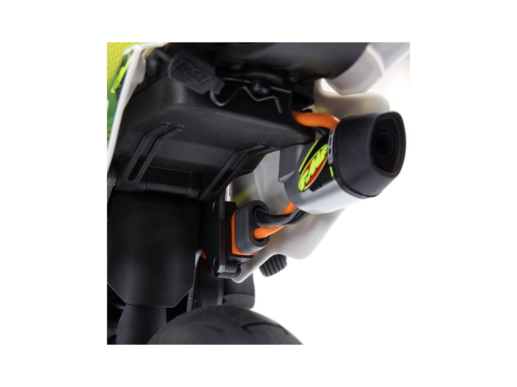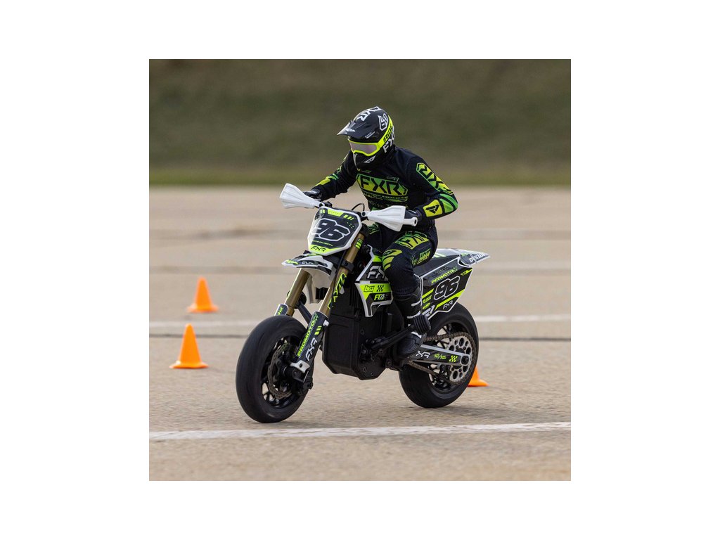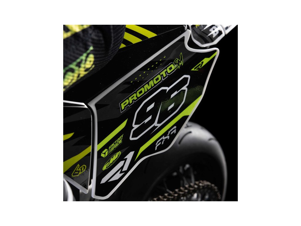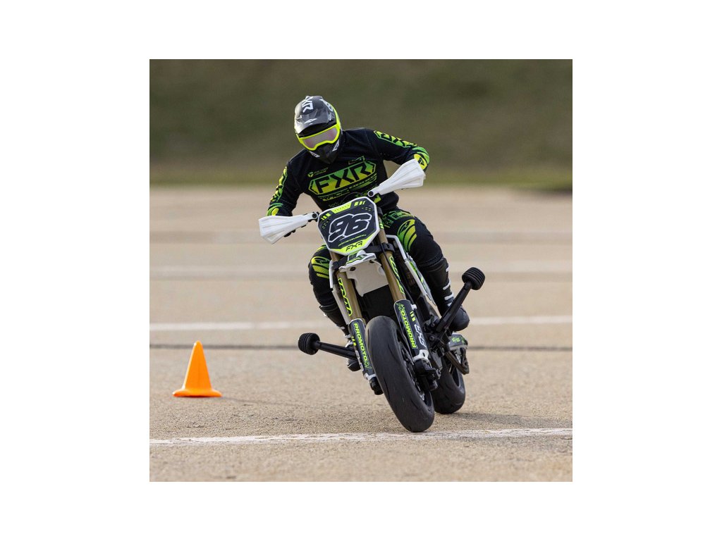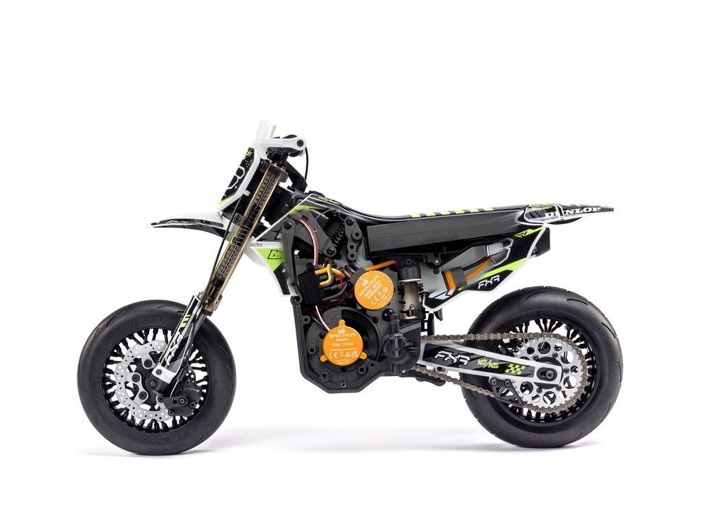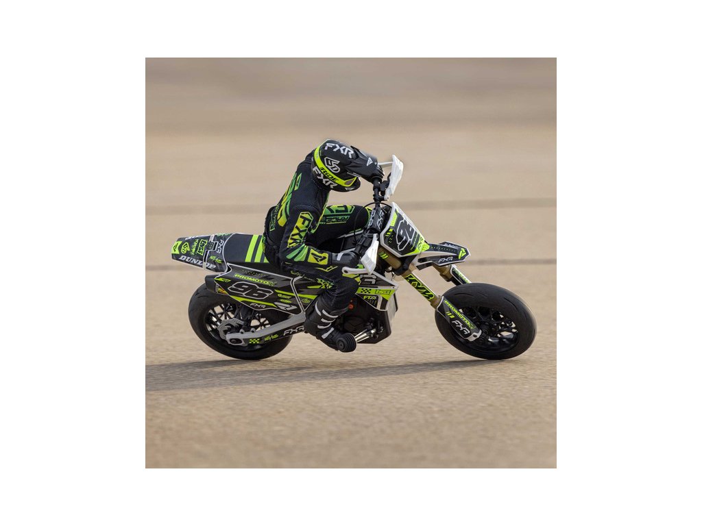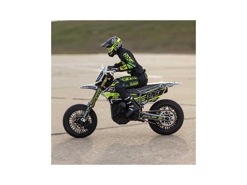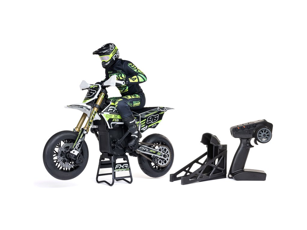 Motorka na dálkové ovládání Promoto-SM vypadá jako skutečný motard. Mezi výrazné maketové detaily patří chrániče rukou, zkrácený přední blatník a oficiálně licencovaná grafika FXR s oblečením jezdce. Maketový vzhled se skloubí s technicky výborně zvládnutým realistickým ovládáním motorky a s vysokým výkonem střídavého motoru. To vše díky jedinečnému spojení mechanické a elektronické technologie, vyvinuté speciálně pro Losi Promoto.