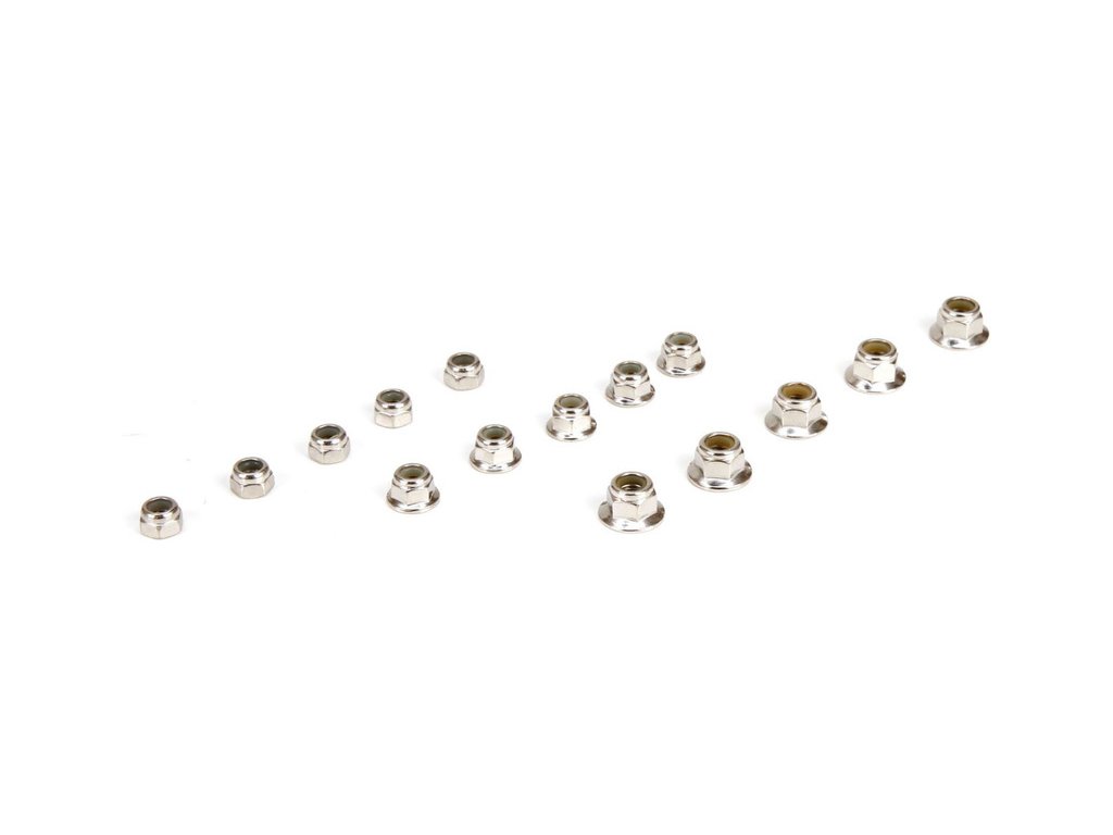 Náhradní díl pro RC modely aut Losi Desert Buggy XL-E 1:5 4WD: sada samojistných matic (15 ks).