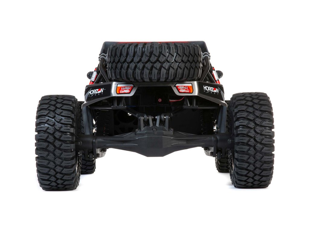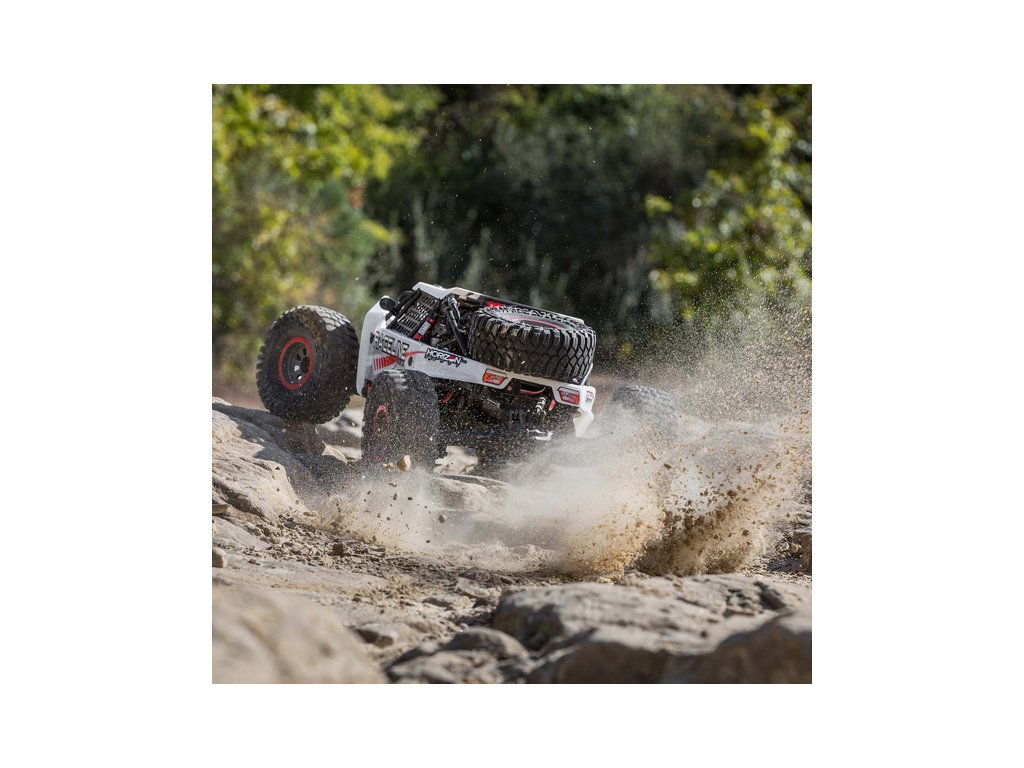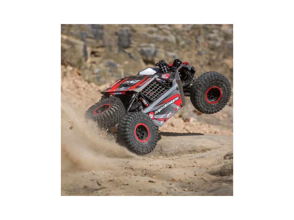 Losi Rock Rey 4WD 1:10 Rock Race V2 je sestaven a připraven k jízdě. Speciální konstrukce zadních kyvných ramen s dlouhým zdvihem, hliníkové šasi, pohon výkonným střídavým motorem Firma 5687. Nainstalovaný přijímač se stabilizací AVC. Model dosahuje rychlost až 80 km/hod! Samozřejmostí je voděodolná konstrukce a skvělé jízdní vlastnosti, které znáte od značky Losi.