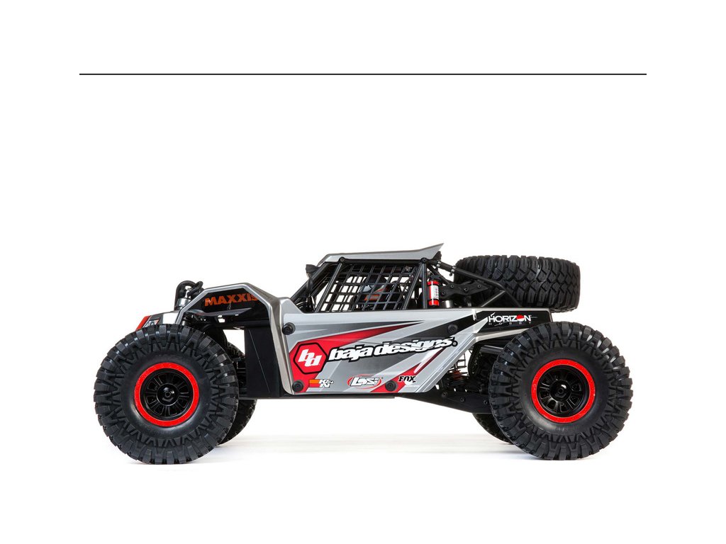 Licencované zbarvení Raceline Wheels a Baja Designs je použito u kompletně detailního zbarvení Super Rock Rey V2. Budete mít dojem, že řídíte skutečný závodní stroj.