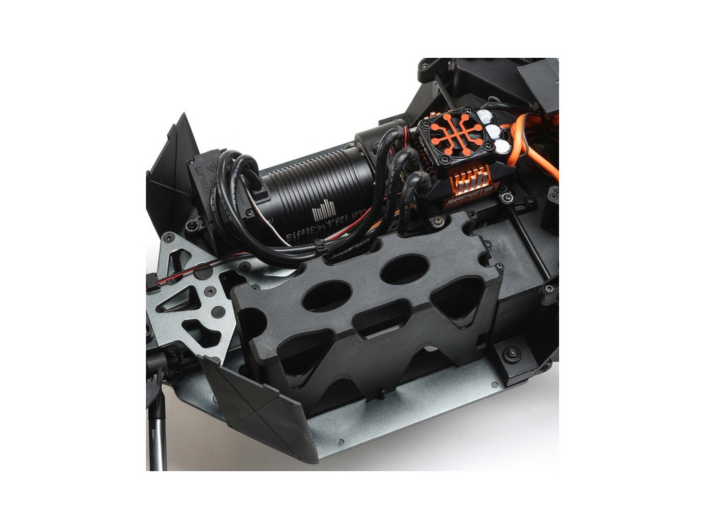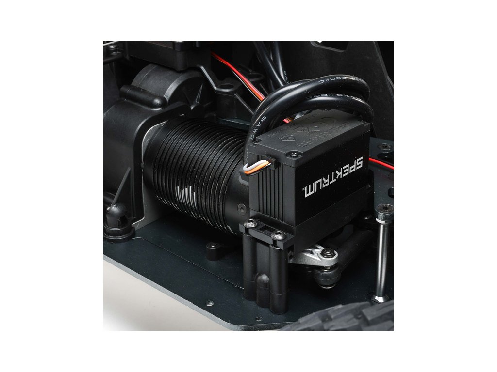 Auto je vybaveno střídavým motorem Spektrum Firma 5687 750ot/V a voděodolným regulátorem Spektrum Smart Firma 160A 3-8S. K napájení lze použít 2ks LiPol baterií 2S 7,4V nebo až 4S 14,8V. Celkové napětí je proto až 8S 29,6V. V této konfiguraci již auto nezastaví jen tak nějaká překážka, rychlost dosahuje až 80km/hod!