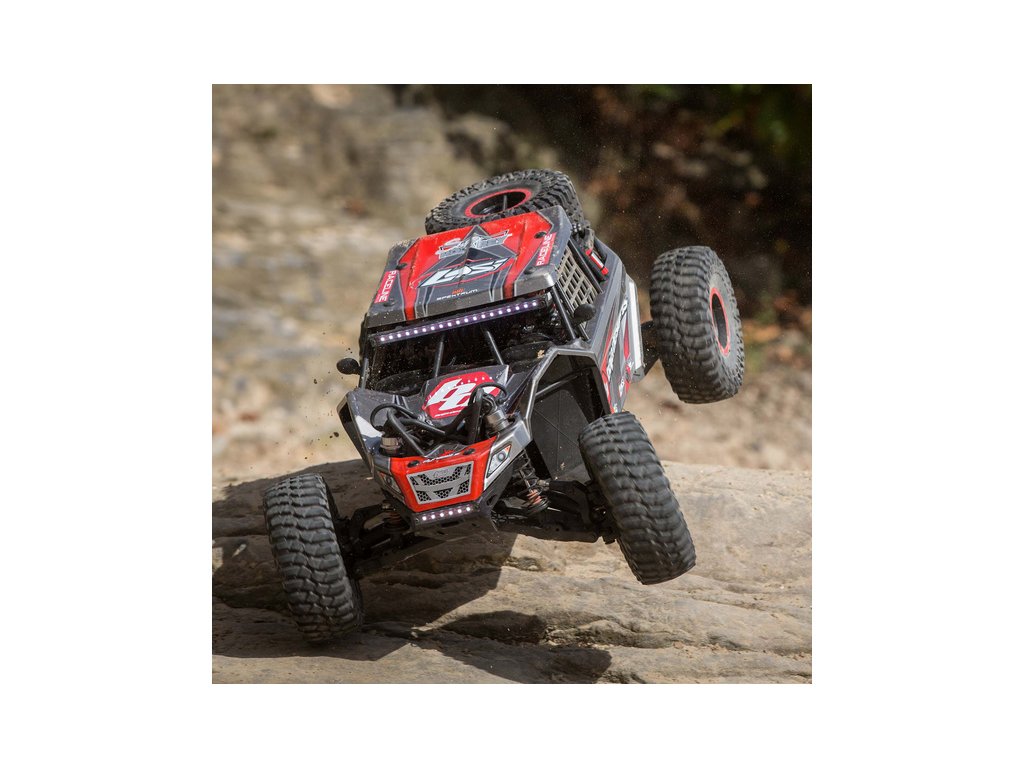 Losi Rock Rey 4WD 1:10 Rock Race V2 je sestaven a připraven k jízdě. Speciální konstrukce zadních kyvných ramen s dlouhým zdvihem, hliníkové šasi, pohon výkonným střídavým motorem Firma 5687. Nainstalovaný přijímač se stabilizací AVC. Model dosahuje rychlost až 80 km/hod! Samozřejmostí je voděodolná konstrukce a skvělé jízdní vlastnosti, které znáte od značky Losi.