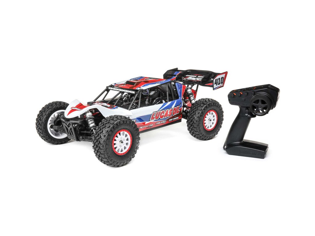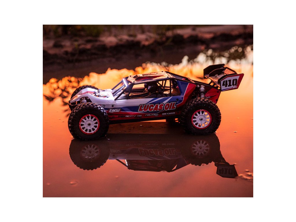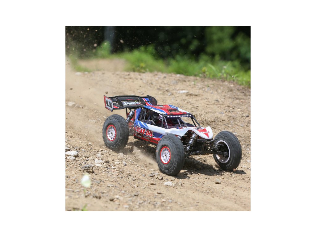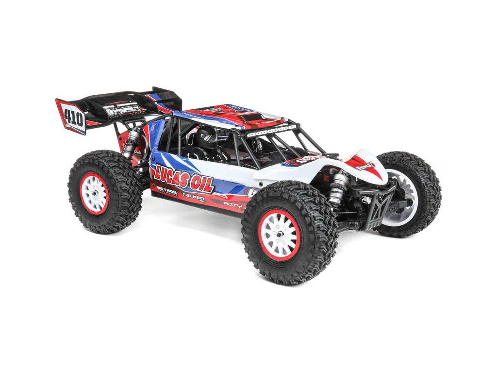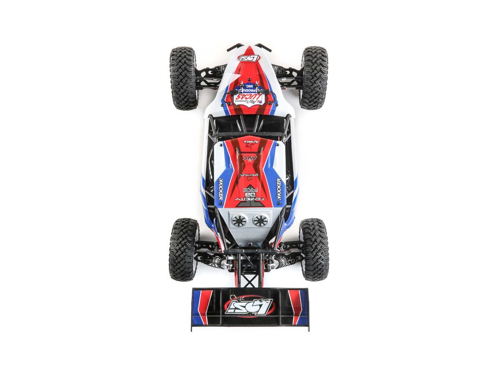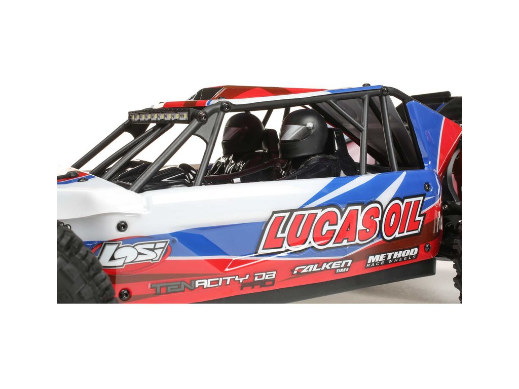 RC model auta na dálkové ovládání Losi Tenacity Desert Buggy Pro s klecí karosérie a kokpitem s posádkou a náhonem 4WD jede až 80 km/hod! Integrovaná stabilizace jízdy AVC, technologie Smart, výkonný střídavý motor pro LiPol 2S-3S, vysílač Spektrum DX3, osvětlení.