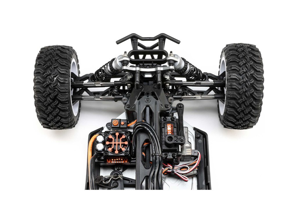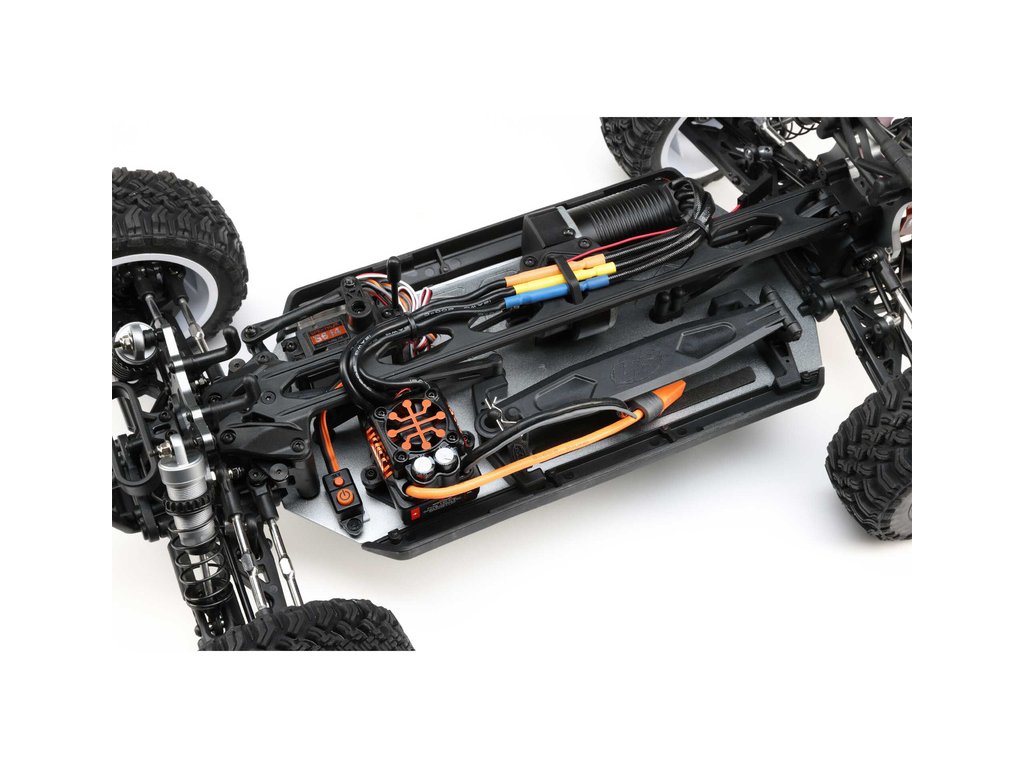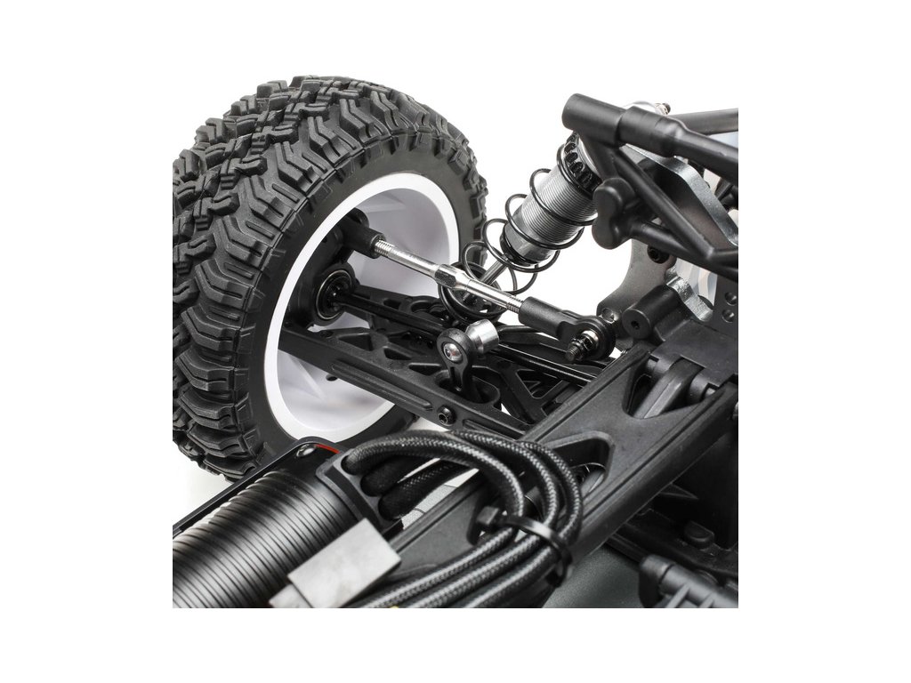 TENACITY DB Pro je postaven v metrické soustavě a obsahuje hliníkové prvky, které konkurence prodává jako volitelné součásti. RC model auta Losi Tenacity-DB Pro je vybaven všemi nejnovějšími technologickými vychytávkami, včetně střídavého regulátoru Spektrum™ Smart 130A BL a střídavého motoru Spektrum Firma® 4-P 3150KV 550, který vám umožní dosáhnout pomocí 3-článkové LiPo baterie, rychlost až 80 km/hod. Regulátor je samozřejmě voděodolný, plně programovatelný a je dodáván s kabelem a konektorem IC5™. V balení je vysílač Spektrum DX3 DSMR, přijímač Spektrum AVC® s prioritou řízení, nainstalovány jsou pneumatiky Falken Wildpeak MT a disky Method. RC model auta Losi Tenacity-DB Pro je sestaven a připraven k jízdě