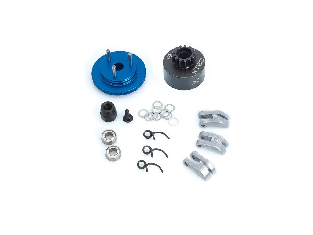 Nyní je k dispozici spojková sada pro motory .2, která byla upravena pro TRUGGY. Sada obsahuje spojkové čelisti z lehké slitiny, spojkové pružiny 3x 1,1 mm, 13zubý spojkový bubínek, setrvačník o průměru 38,0 mm a všechny drobné díly potřebné k montáži, jako je matice, kuličkové ložisko a sada podložek.