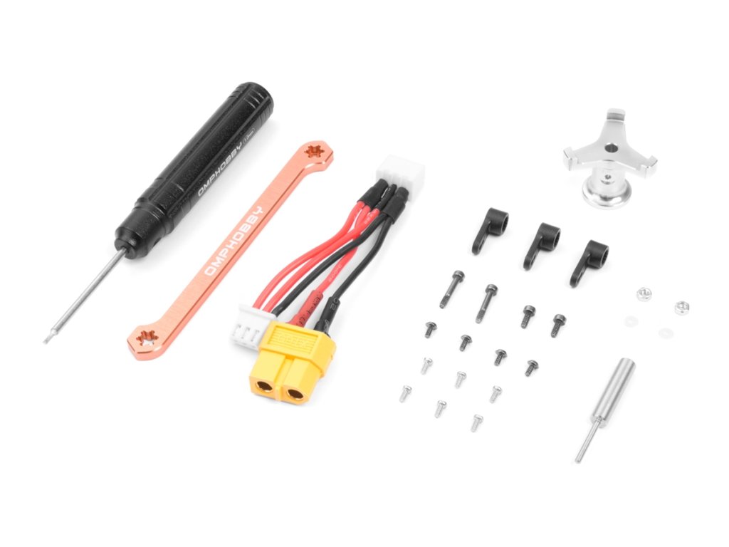 ARF set vrtulníku obsahuje: 100% sestavený a k letu připravený model M1 EVO, pohonný akumulátor LiPo 7,4 V 350 mAh 50C, imbusový šroubovák, plochý klíč, nabíjecí kabel, pevnou krabici z pěnového EPP s odklopným víkem pro bezpečné přepravování a skladování modelu, návod k obsluze modelu a nastavování řídící jednotky.