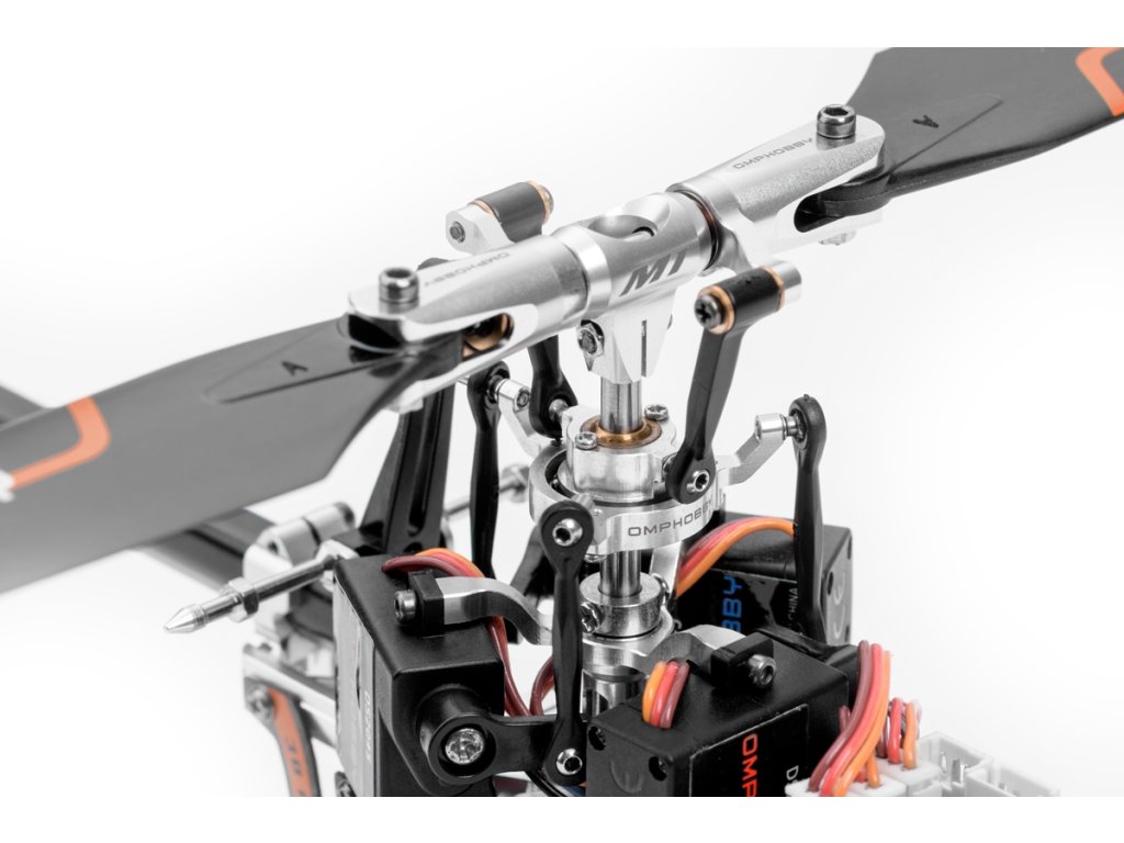 Robustní 3 mm hlavní hřídel je uložena v kuličkových ložiscích. Deska cykliky je duralová stejně jako rotorová hlava s unašeči listů. Díky 3G flybarless systému a elektronickému CCPM je rotorová hlava velmi jednoduchá. Unašeče listů nosného rotoru jsou nádhernou miniaturou unašečů „velkých" RC vrtulníků - se všemi těmi kuličkovými ložisky a tlumícími vložkami!