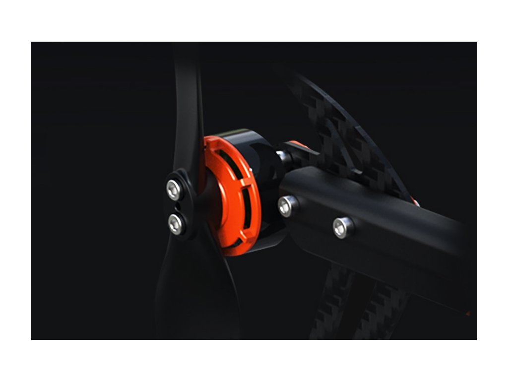 Robustní 4 mm hlavní hřídel je uložena v kuličkových ložiscích. Deska cykliky je duralová stejně jako rotorová hlava s unašeči listů. Díky 3G flybarless systému a elektronickému CCPM je rotorová hlava s optimalizovanou geometrií velmi jednoduchá. Unašeče listů nosného rotoru jsou nádhernou miniaturou unašečů „velkých" RC vrtulníků - se všemi těmi kuličkovými ložisky a tlumícími vložkami!