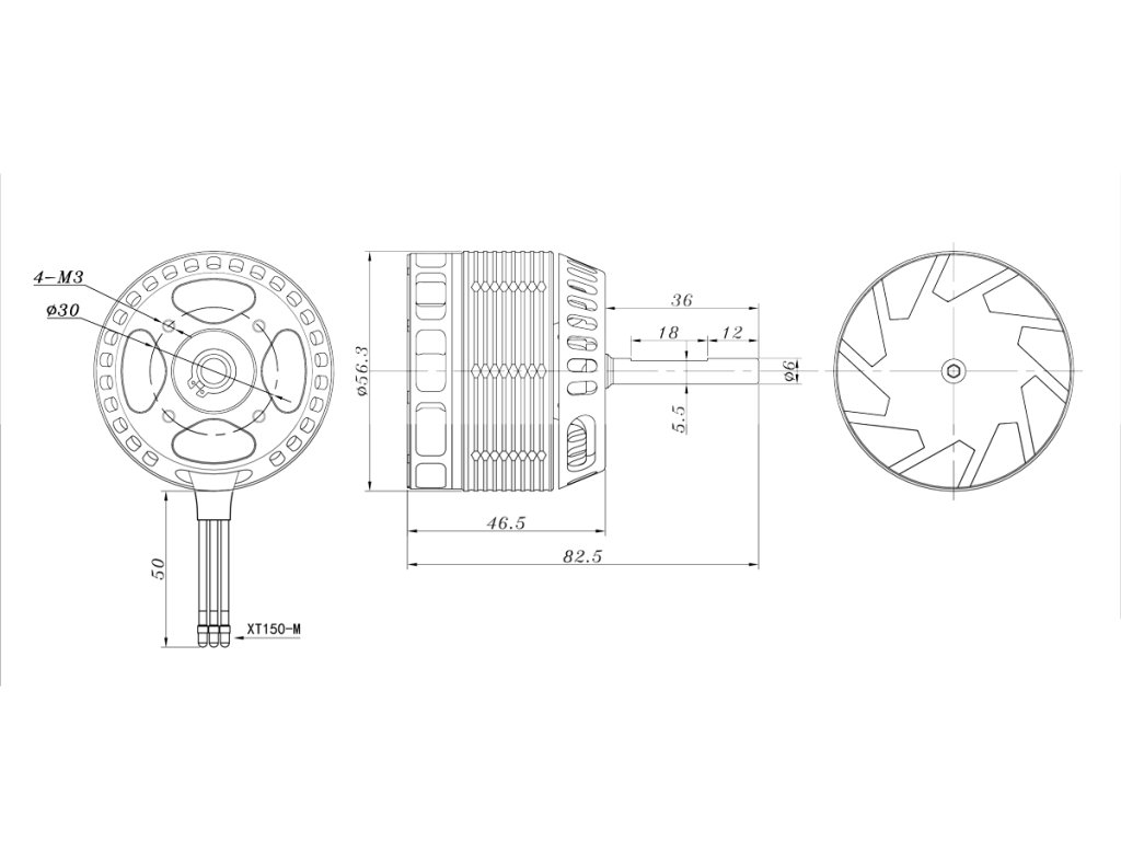 Montáž motoru: Sunnysky M4520R 1120KV je konstruován pro přední montáž. Upevňovací otvory se závitem M4 jsou umístěny na čele motoru na kružnici o průměru 30 mm. Délka volné hřídele je 36 mm; v případě potřeby je možno hřídel vyměnit za dlouhou tuningovou (55 mm).