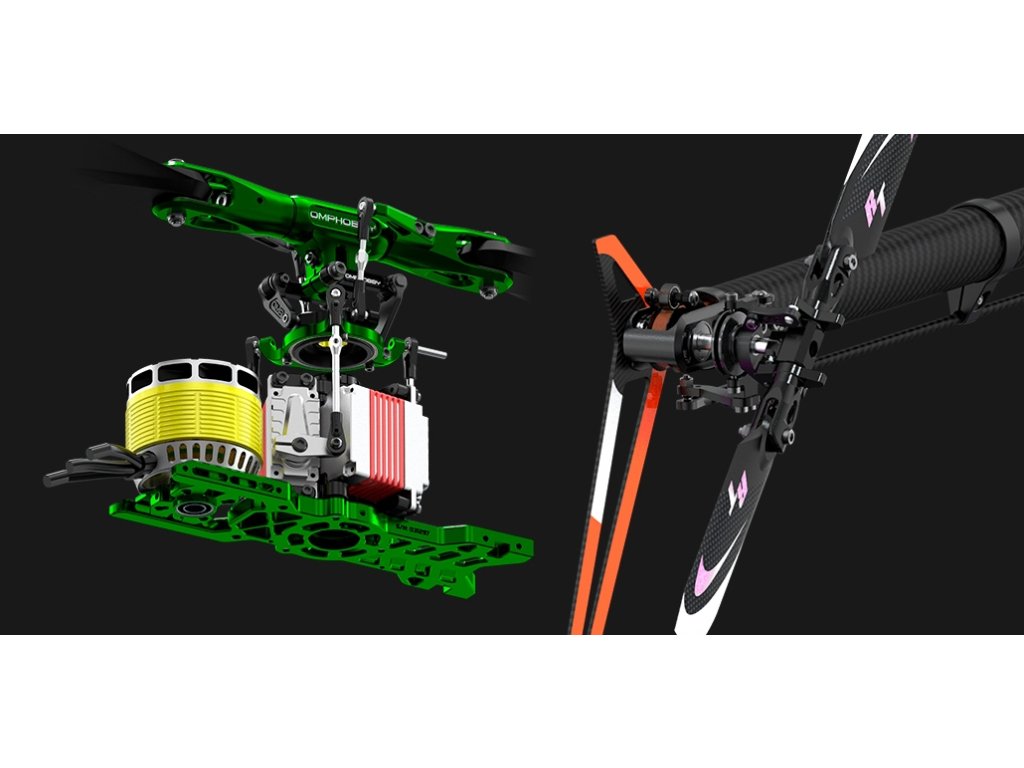 - Celokovová rotorová hlava z vysokopevnostního duralu 7075 s velkým rozsahem výchylek pro vynikající odezvu a autoritu řízení
