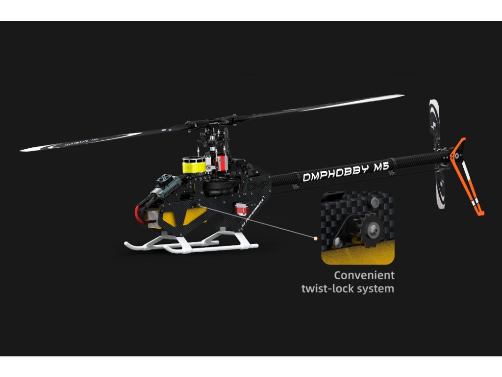 M5 dovoluje instalaci široké škály motorů a elektroniky, takže rovnou z krabice nebo s použitím tuningových dílů snadno vyhoví požadavkům ostřílených 3D pilotů a umožňuje použít jejich nejoblíbenější a důkladně prověřené vybavení.