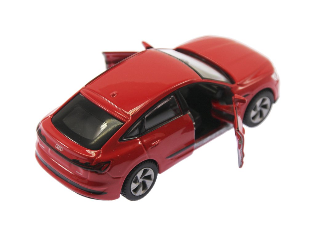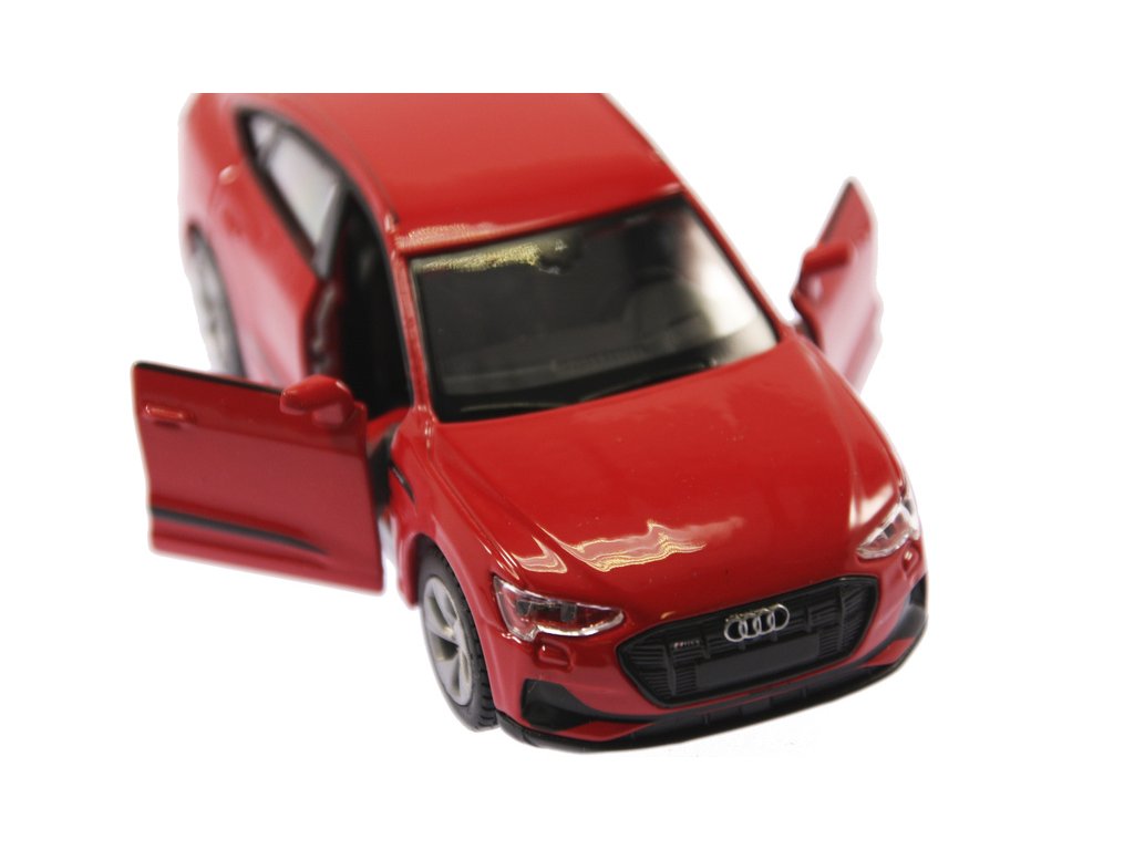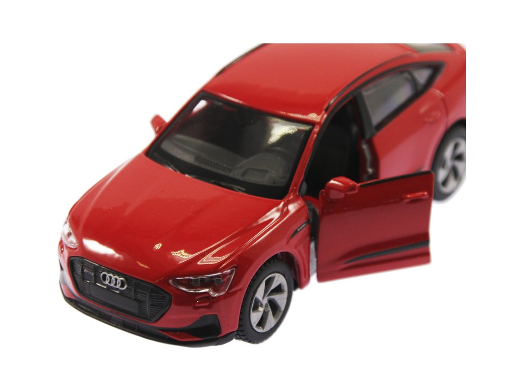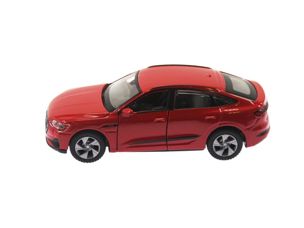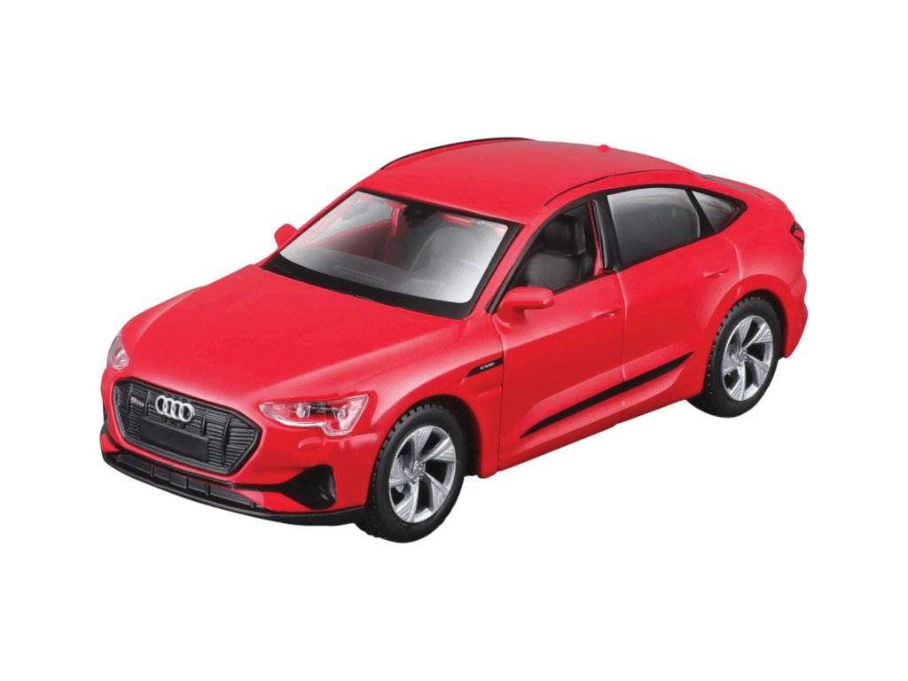 Kovový model Maisto 21835 Audi e-tron Sportback v měřítku 1:46 nejen pro sběratele. Detailní provedení, přívětivá cena, barva červená, délka přibližně 11 cm. Model má otvíratelné dveře a obsahuje natahovací mechanismus.