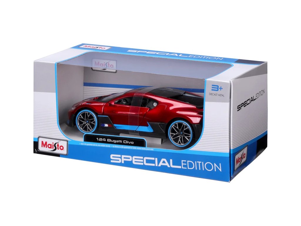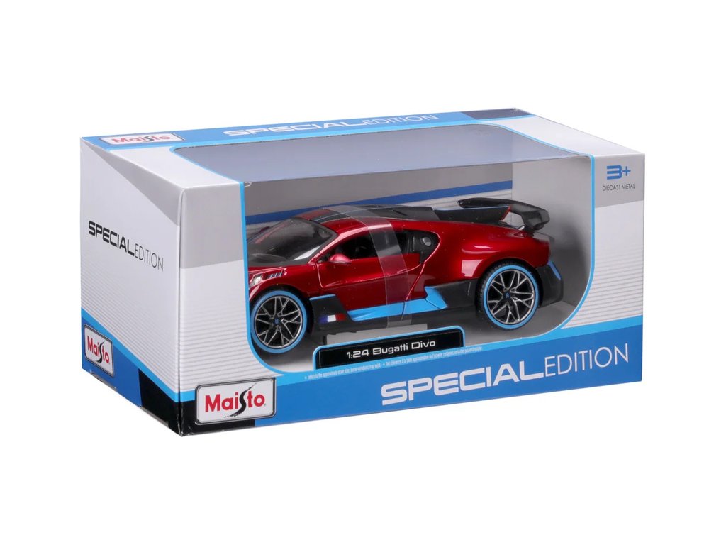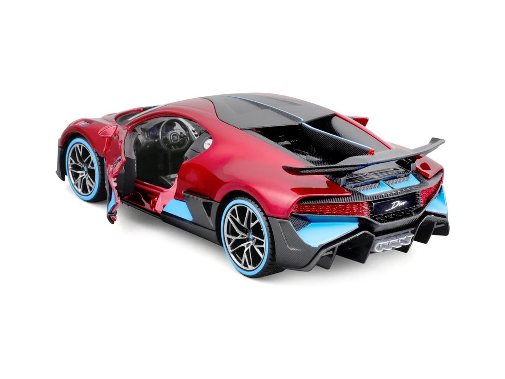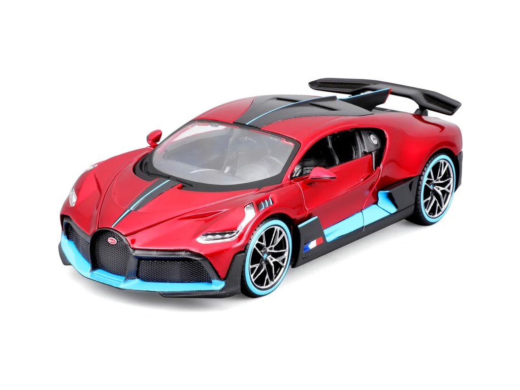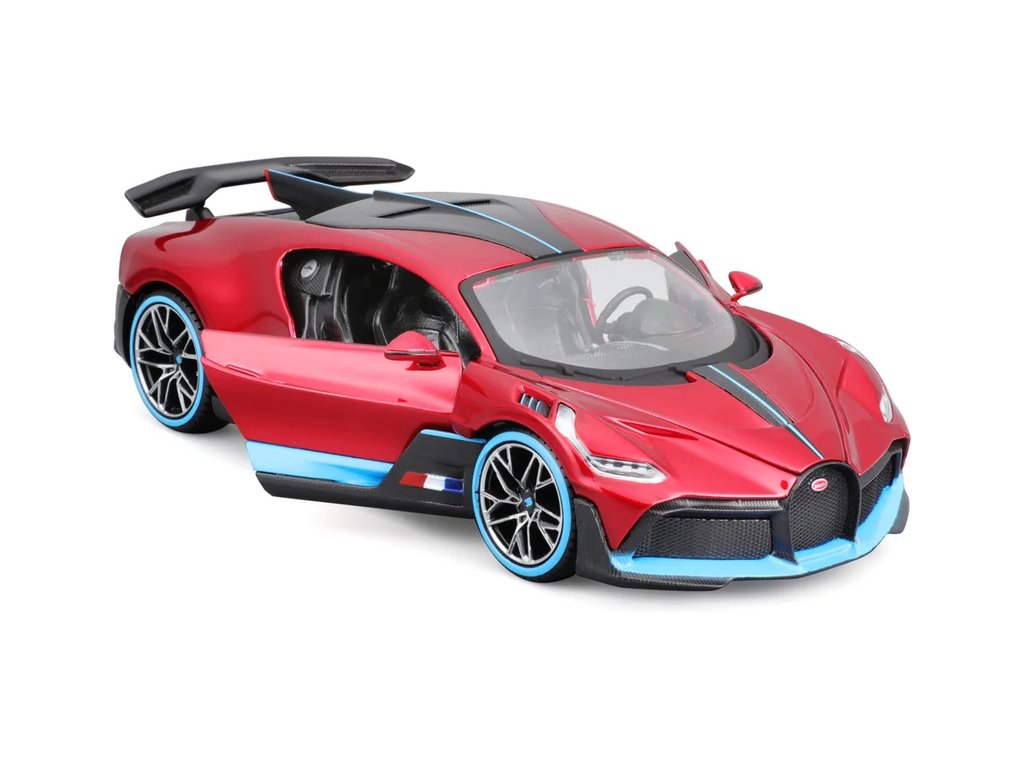 Kovový model auta 1:24 Maisto 31526R Bugatti Divo nejen pro sběratele. Model je v detailním provedení a má otevíratelné dveře. Barva modelu je červená a je přibližně 17 cm velký.
