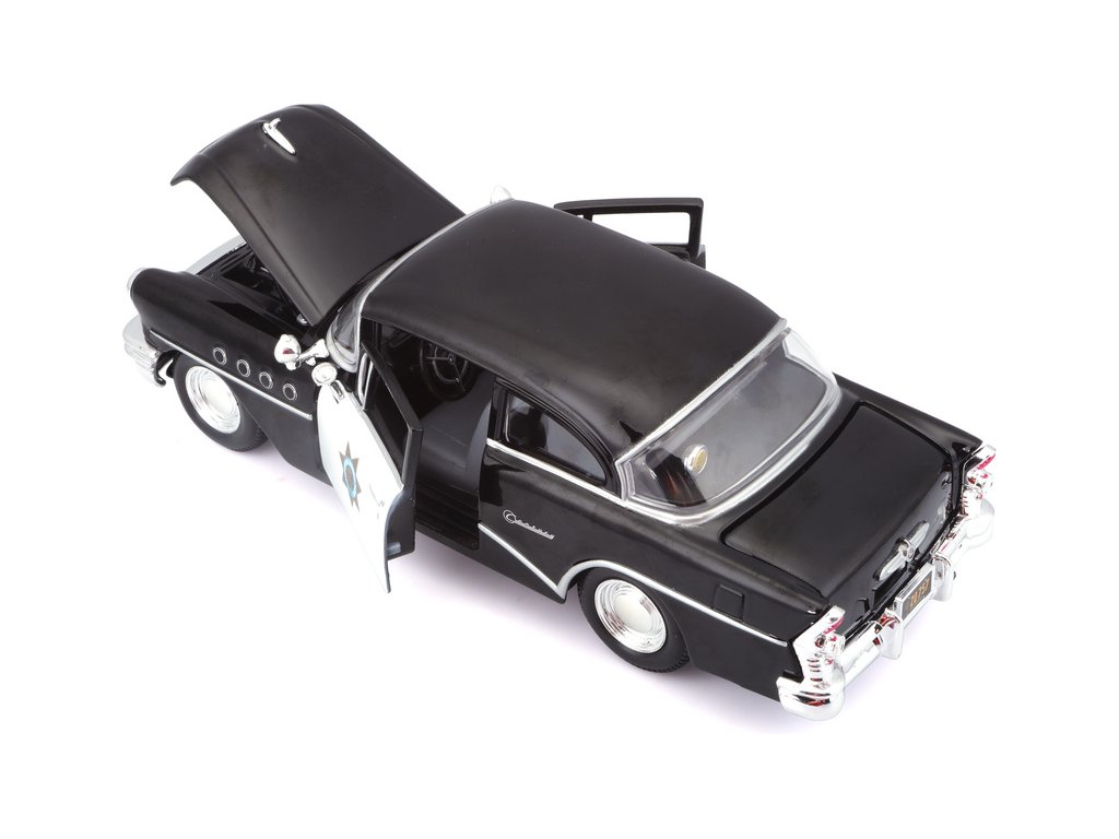 Kovový model auta 1:26 Maisto 31295 Buick Century 1955 nejen pro sběratele. Model je v detailním provedení a má otevíratelné dveře. Barva modelu je černá a je přibližně 19 cm velký.