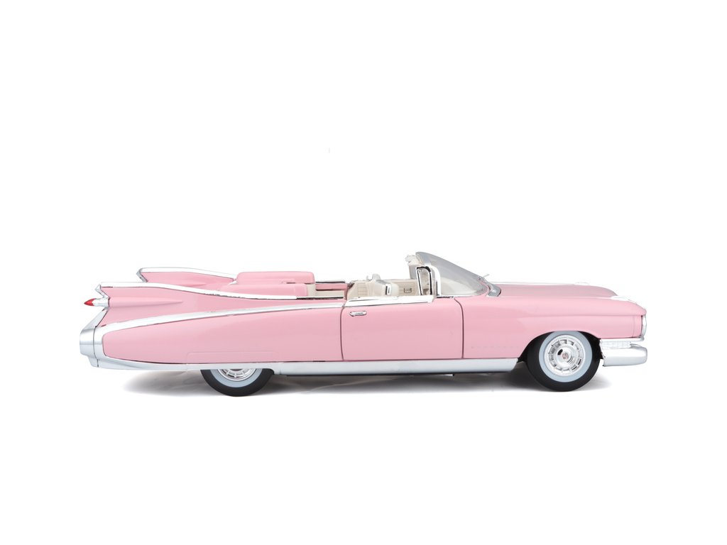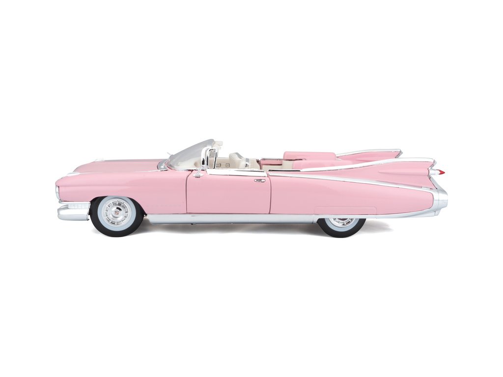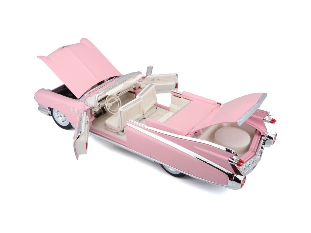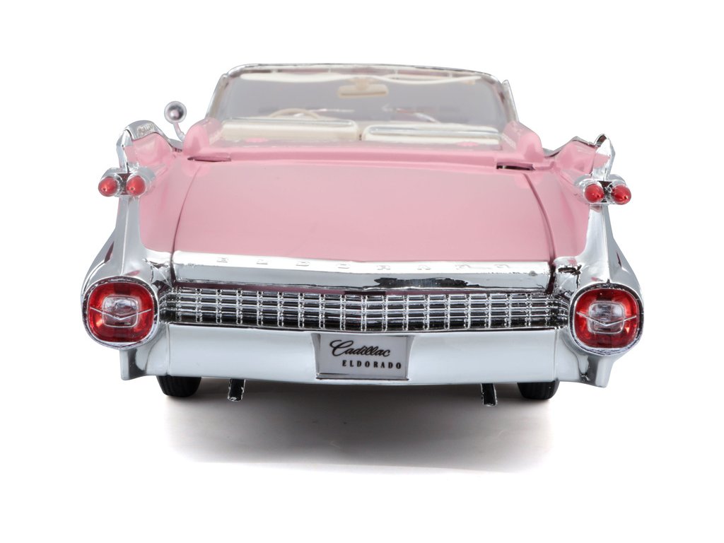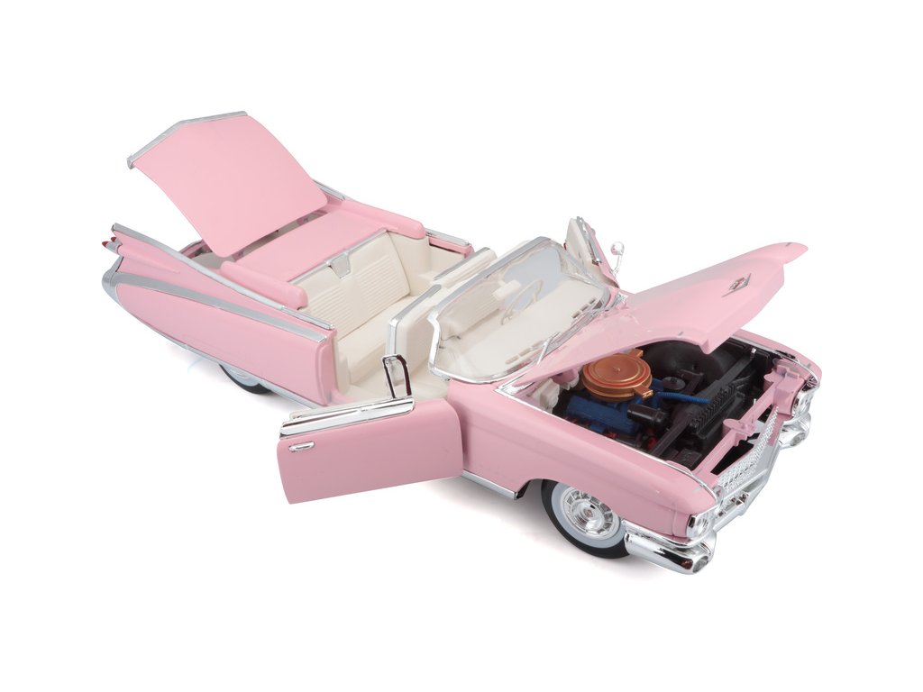 Kovový model auta 1:18 Maisto 36813 Cadillac Eldorado Biarritz 1959 nejen pro sběratele. Model je v detailním provedení na plastovém podstavci. Barva modelu je růžová.