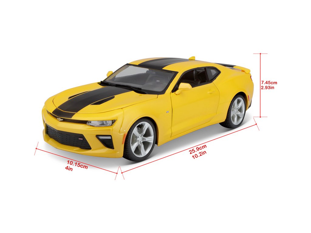 Kovový model auta 1:18 Maisto 31689 Chevrolet Camaro SS nejen pro sběratele. Model je v detailním provedení na plastovém podstavci. Barva modelu je žlutá metalíza a je přibližně 26 cm velký.