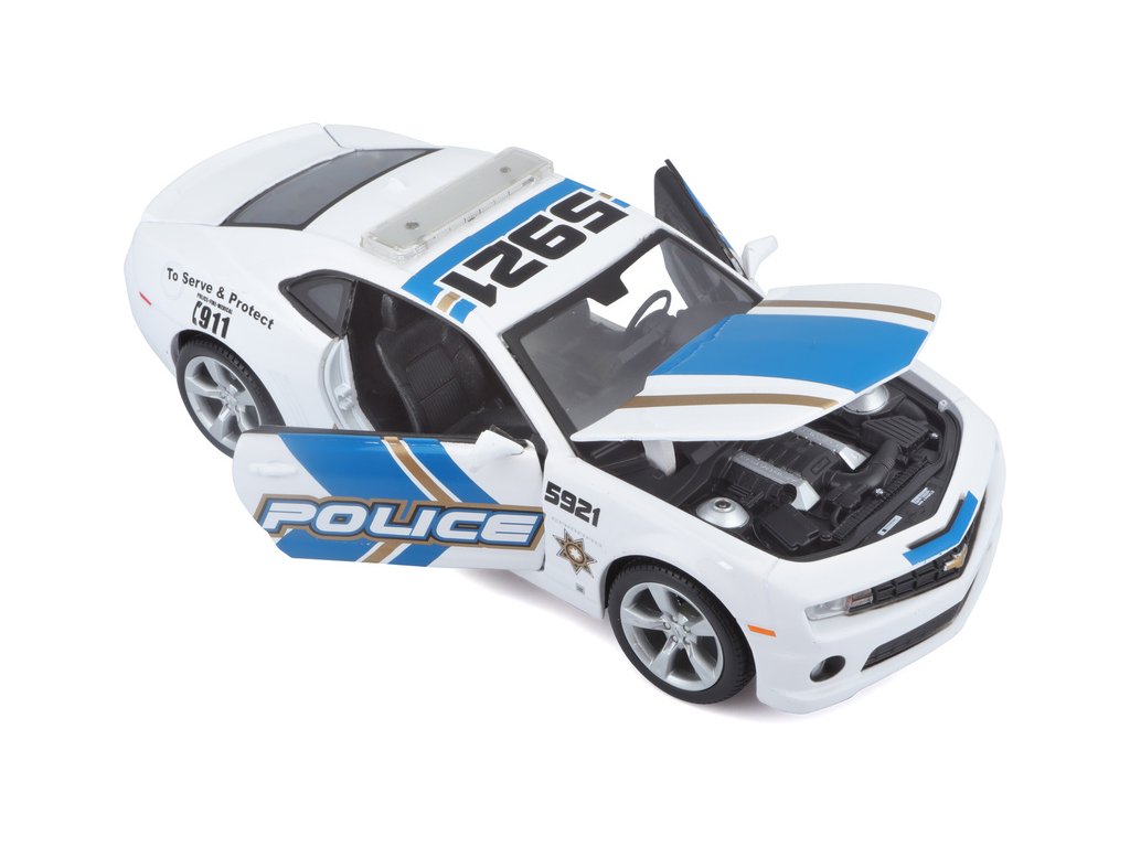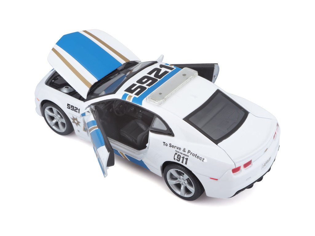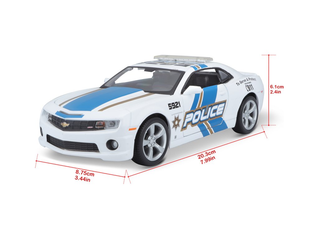 Kovový model auta 1:24 Maisto 31208 Chevrolet Camaro SS 2010 nejen pro sběratele. Model je v detailním provedení a má otevíratelné dveře. Barva modelu je v policejním provedení a je přibližně 19 cm velký.