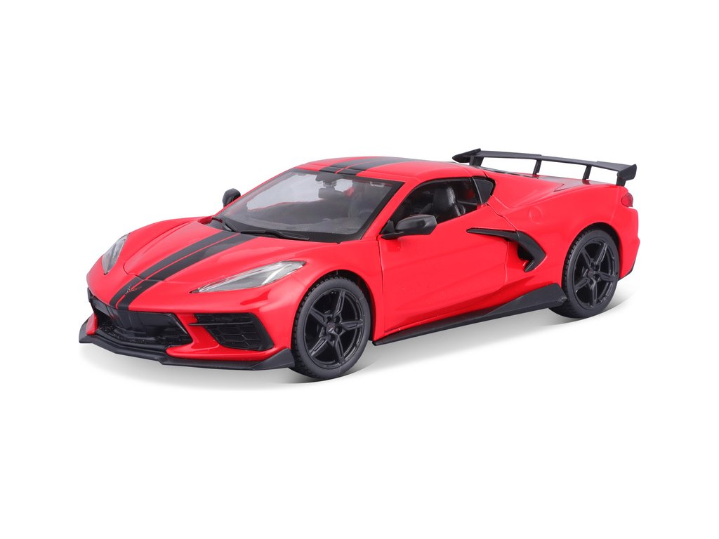 Kovový model Maisto 31534 Chevrolet Corvette Stingray Coupe 2021 v měřítku 1:24 nejen pro sběratele. Detailní provedení, přívětivá cena, barva červená, délka přibližně 17 cm. Model má otvíratelné dveře.