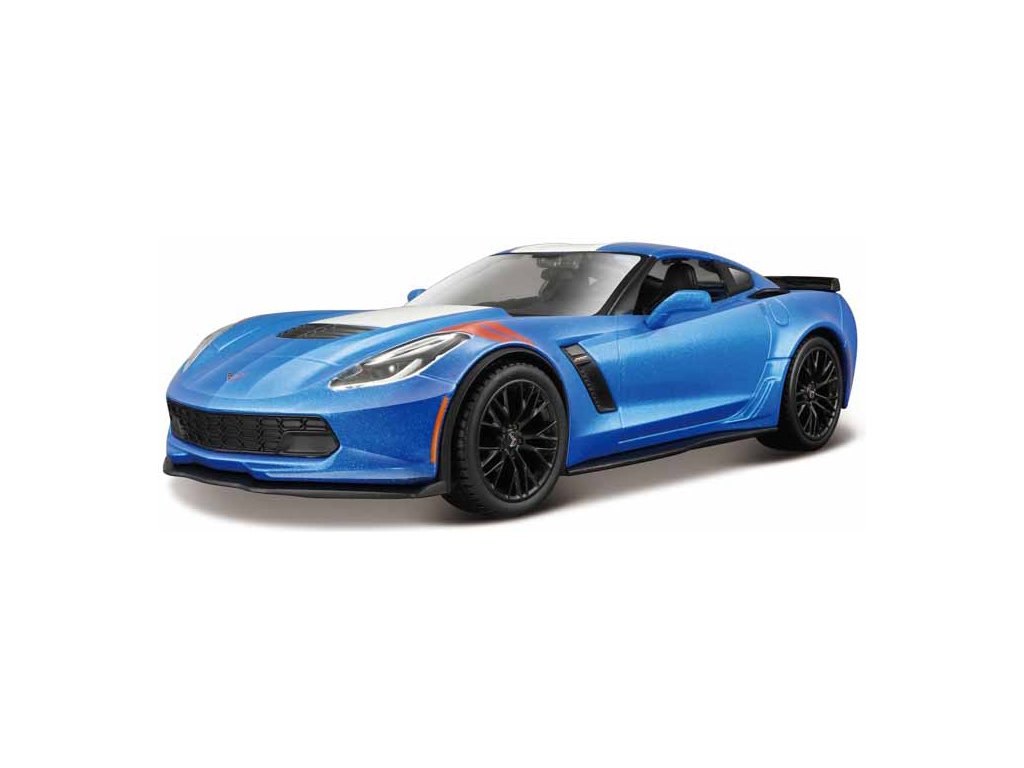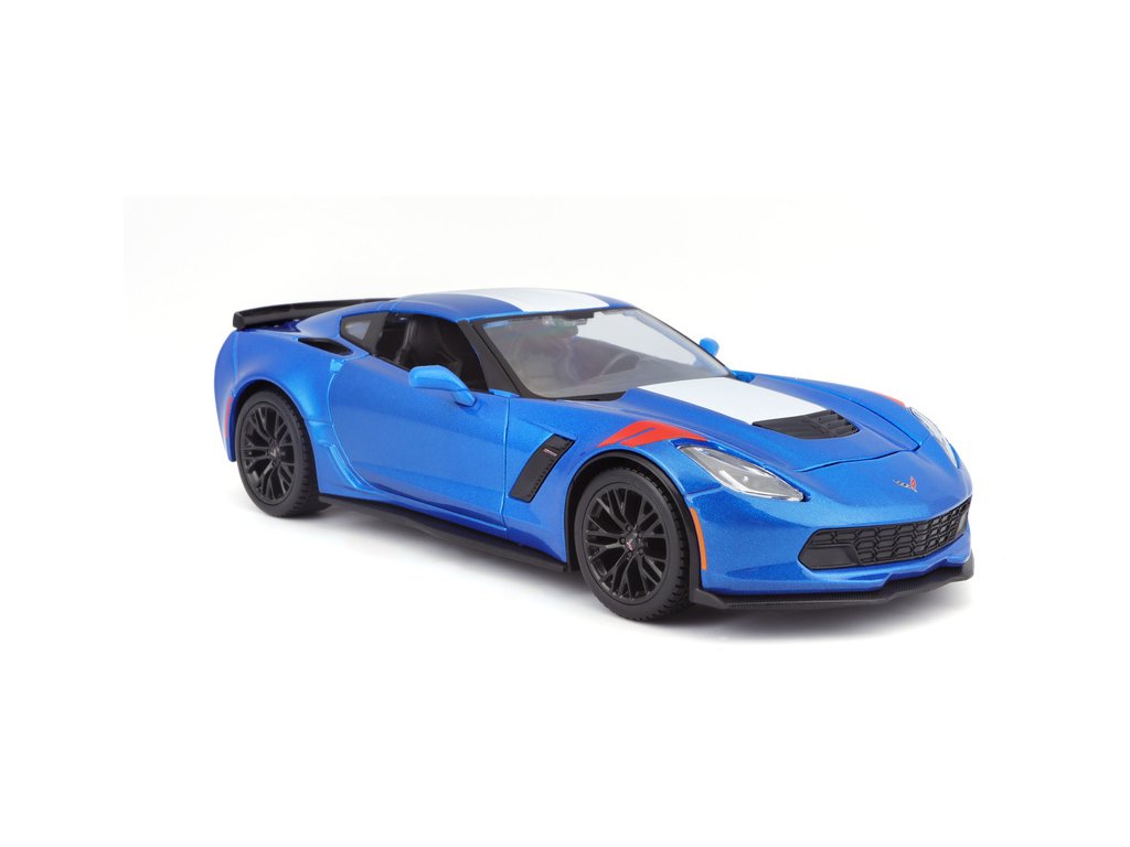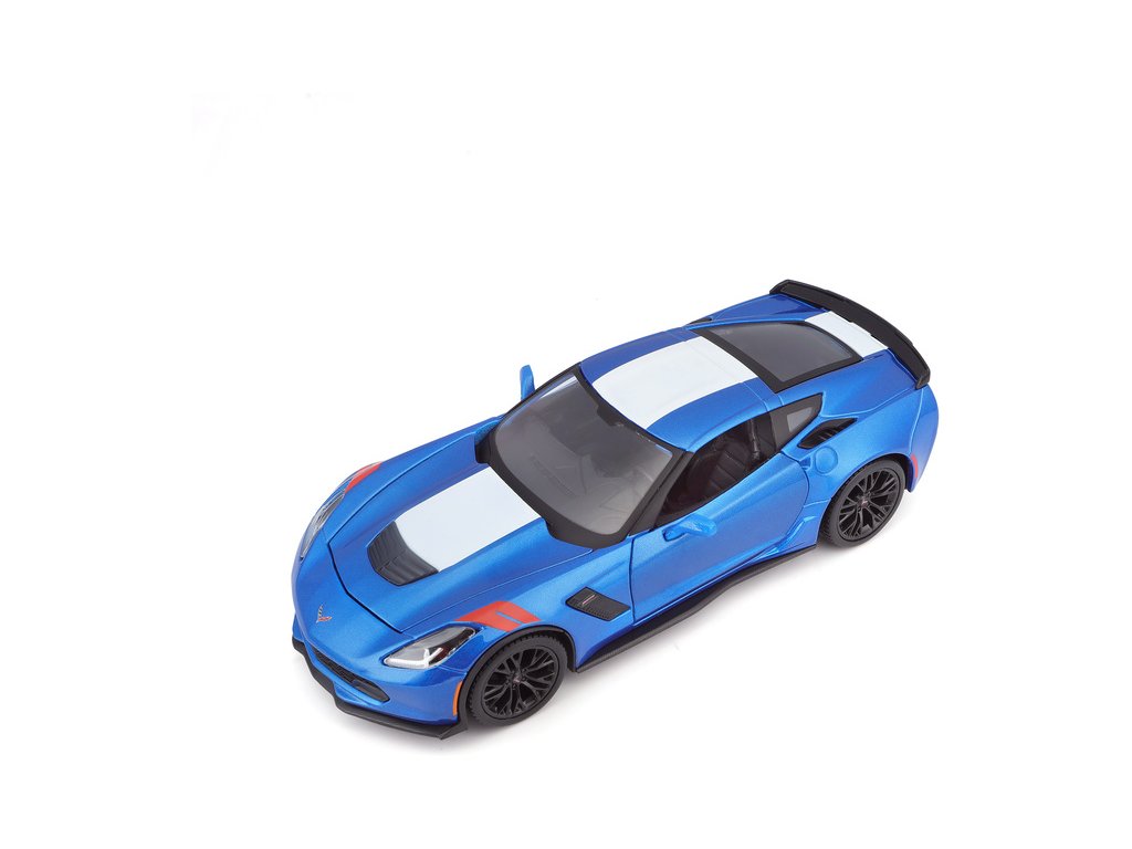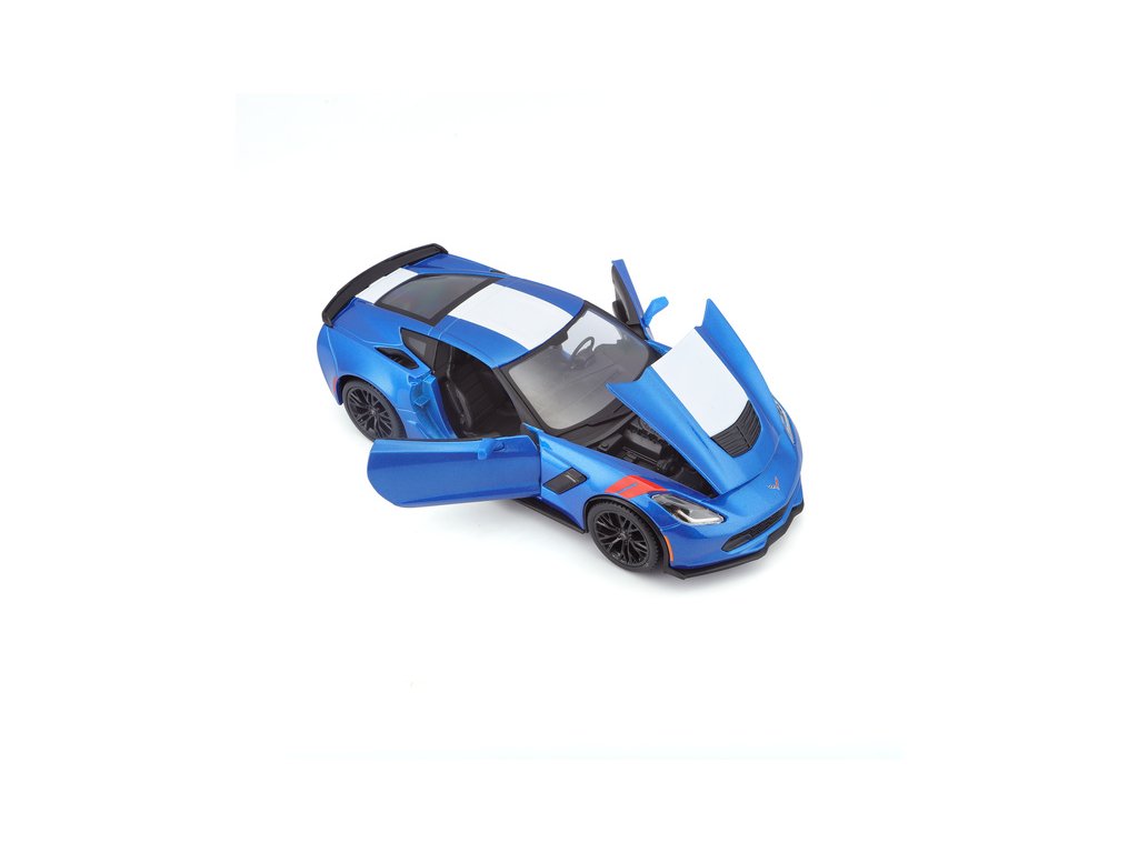 Kovový model auta 1:24 Maisto 31516 Corvette Grand Sport 2017 nejen pro sběratele. Model je v detailním provedení a má otevíratelné dveře. Barva modelu je modrá metalíza a je přibližně 19 cm velký.
