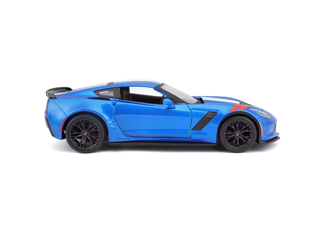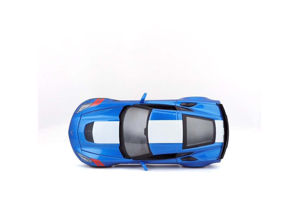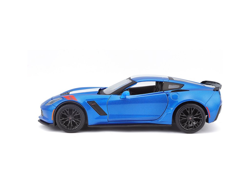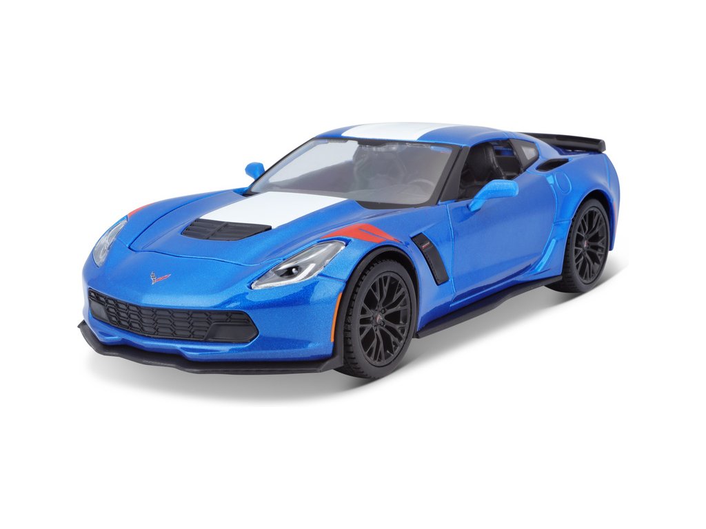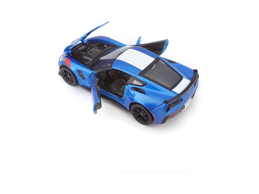 Kovový model auta 1:24 Maisto 31516 Corvette Grand Sport 2017 nejen pro sběratele. Model je v detailním provedení a má otevíratelné dveře. Barva modelu je modrá metalíza a je přibližně 19 cm velký.