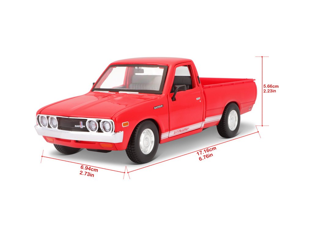 Kovový model auta 1:24 Maisto 31522 Datsun 620 Pick-up 1973 nejen pro sběratele. Model je v detailním provedení. Barva modelu je červená.