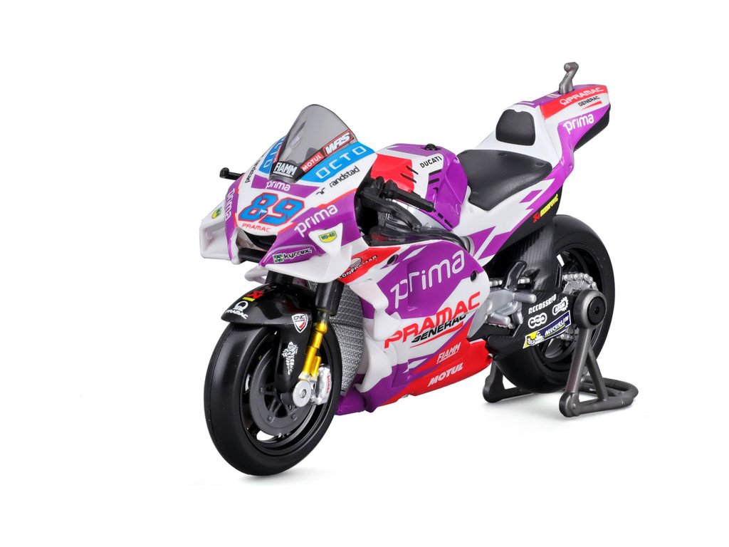 Model v měřítku 1:18 Maisto 36390 závodního motocyklu Ducati Pramac Racing 2022 #89 Martin nejen pro sběratele. Detailní provedení, velmi přívětivá cena, délka 12 cm.