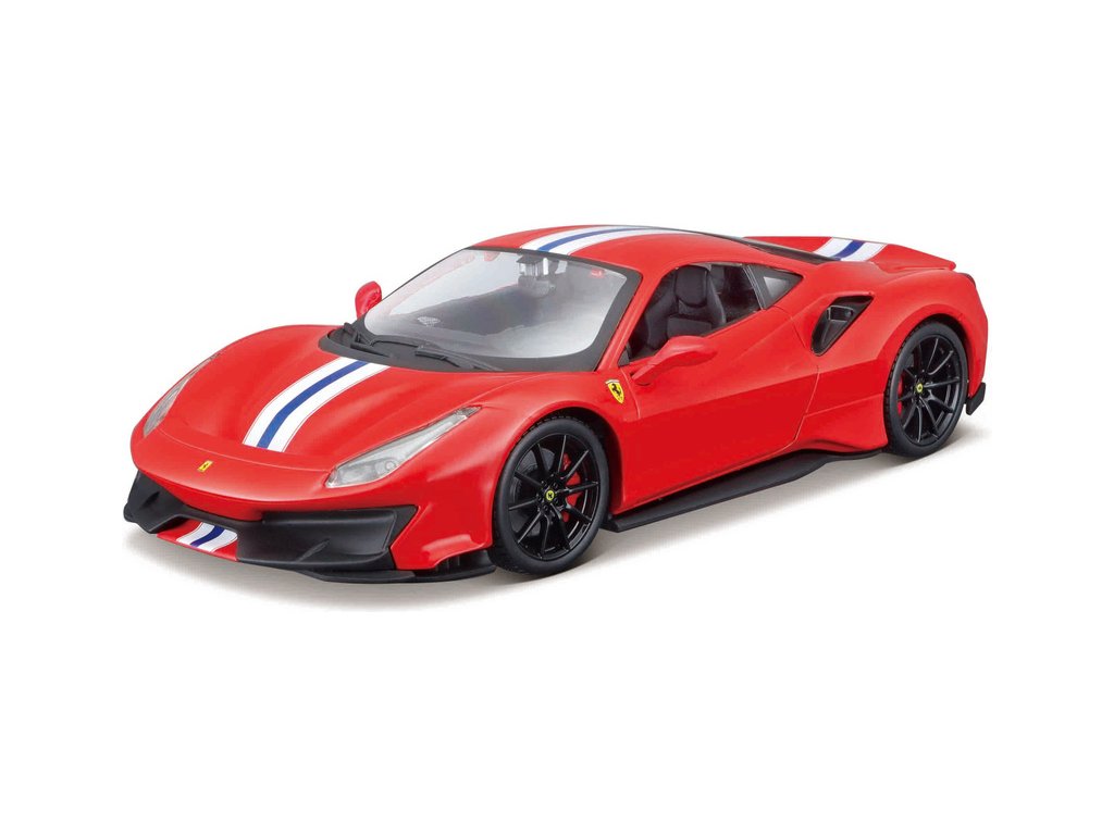 Kovový model auta 1:24 Maisto 39135 Kit Ferrari 488 Pista nejen pro sběratele. Má otevírací dveře a kapotu. Model je ve verzi Kit určené k sestavení. Barva modelu je červená a je přibližně 17 cm velký.