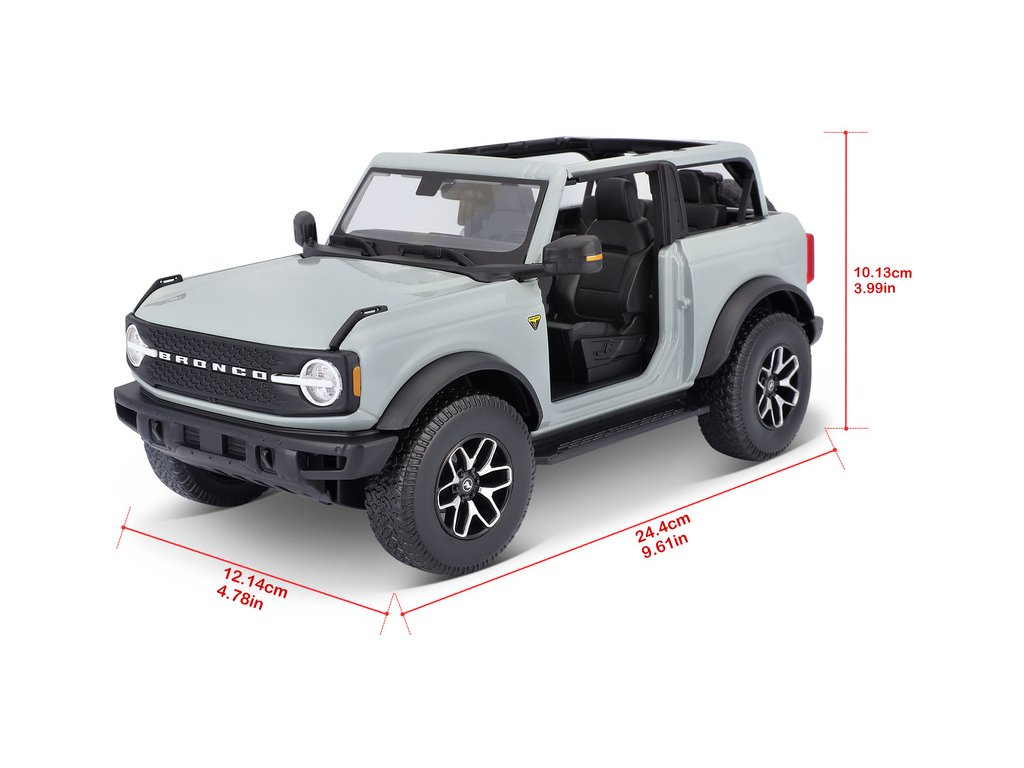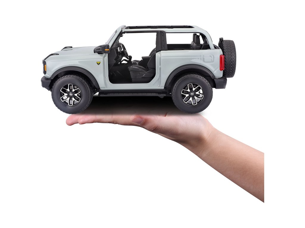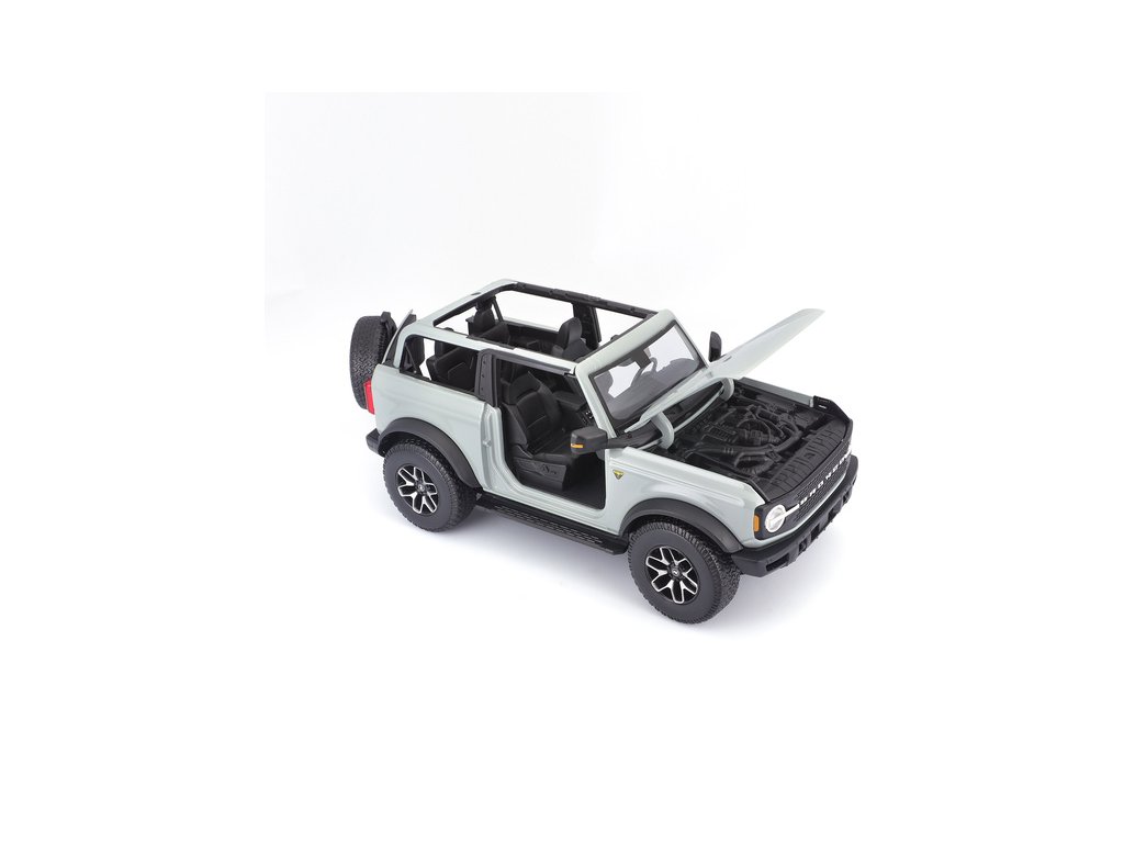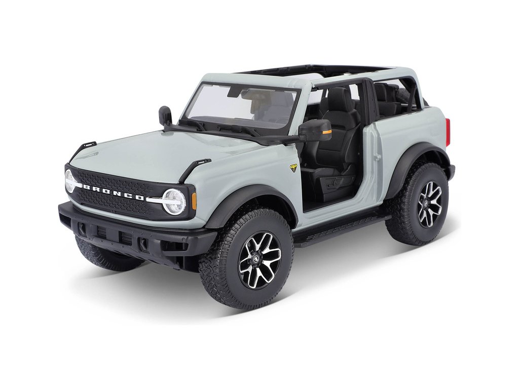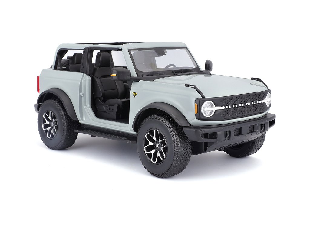 Kovový model auta 1:18 Maisto 31457 Ford Bronco Badlands 2021 nejen pro sběratele. Model je v detailním provedení na plastovém podstavci. Barva modelu je kaktusově šedá a je přibližně 27 cm velký.