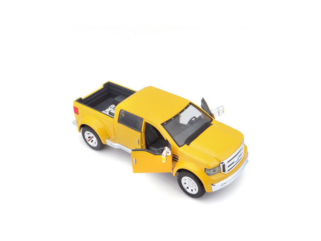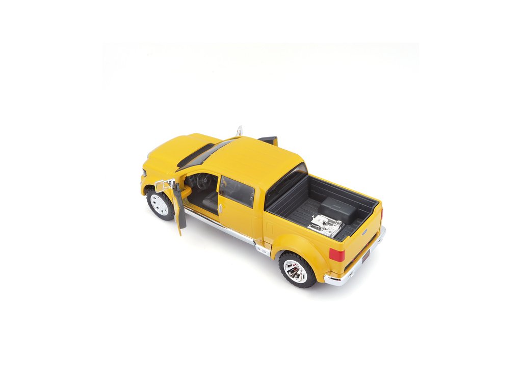 Kovový model auta 1:31 Maisto 31213 Ford Mighty F-350 Super Duty nejen pro sběratele. Model je v detailním provedení a má otevíratelné dveře. Barva modelu je žlutá a je přibližně 18 cm velký.