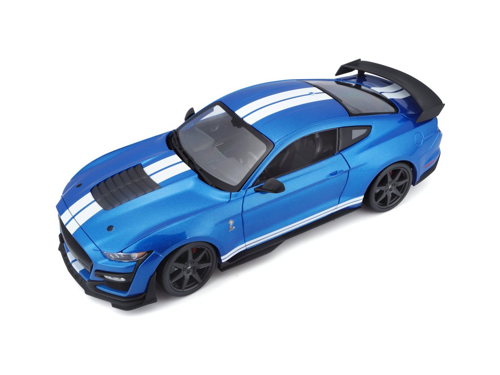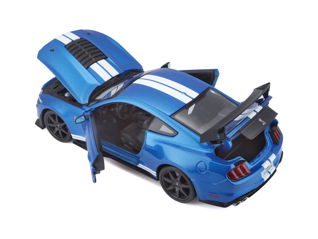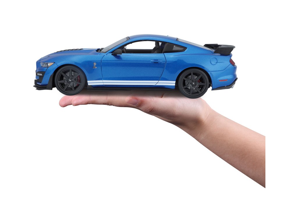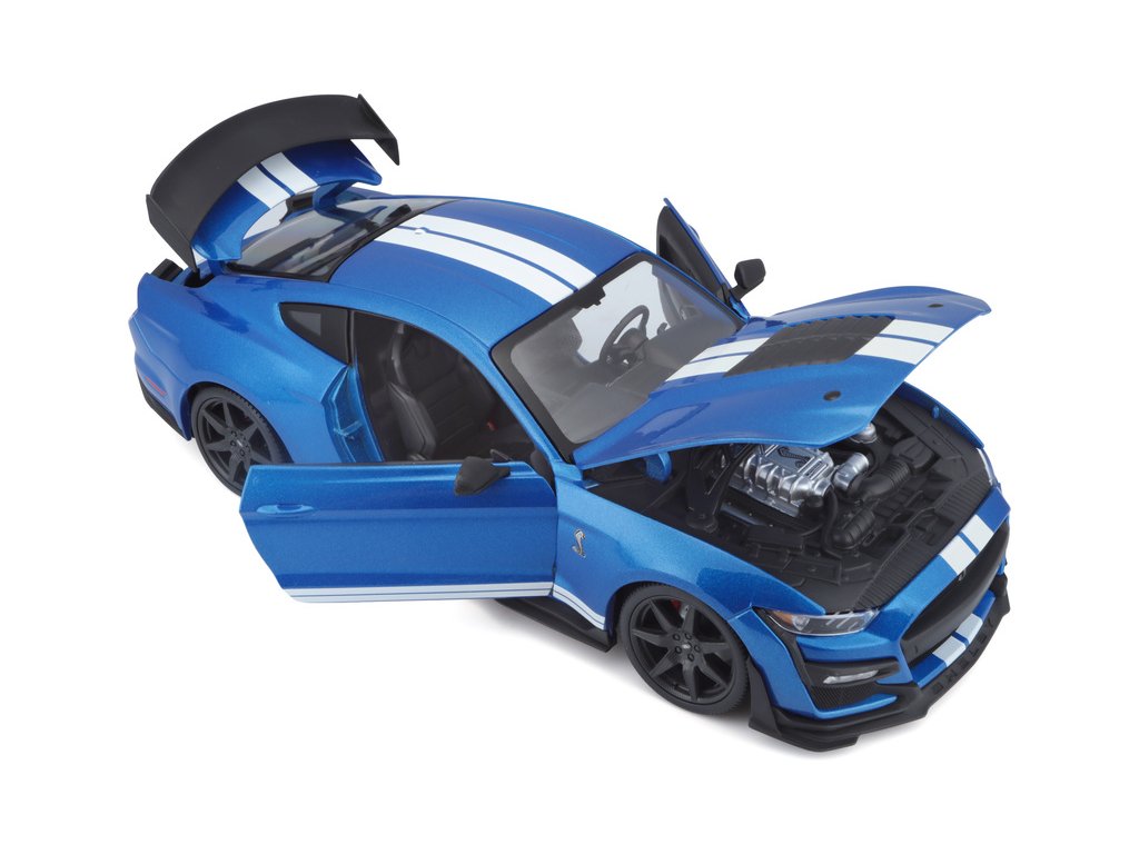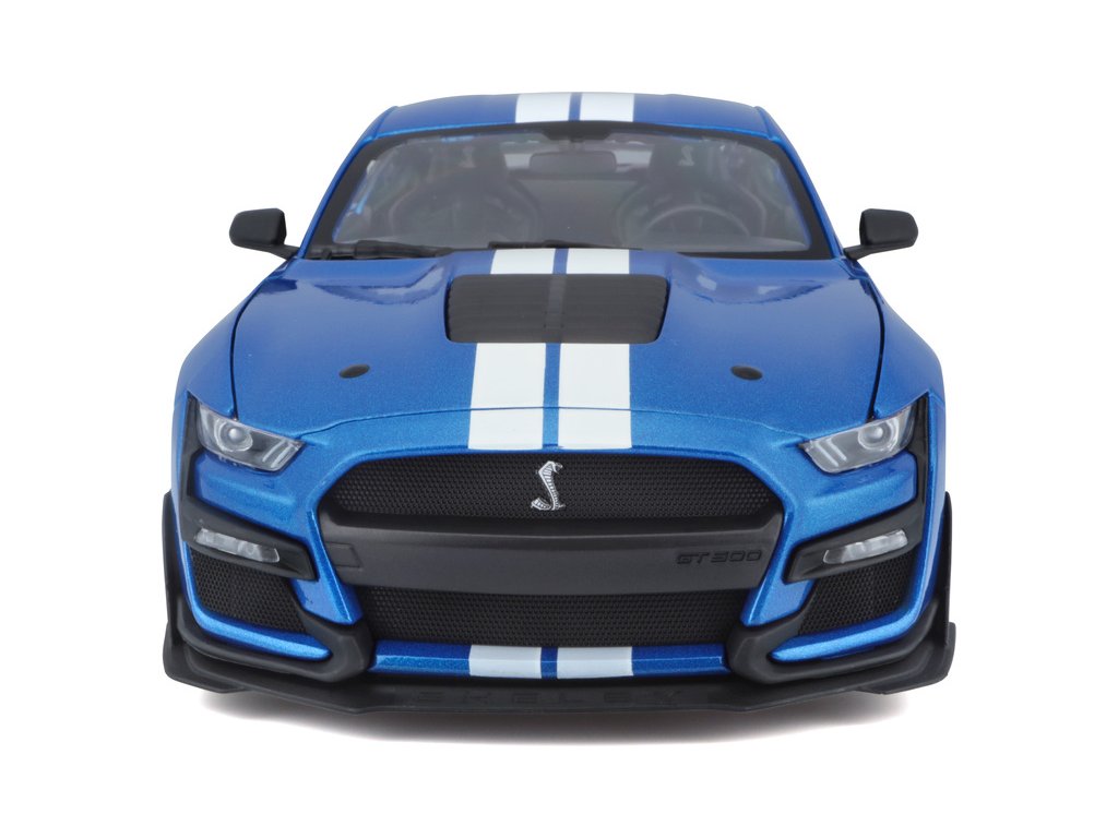 Kovový model auta 1:18 Maisto 31388 Ford Shelby GT500 2020 nejen pro sběratele. Model je v detailním provedení na plastovém podstavci. Barva modelu je modrá metalíza a je přibližně 27 cm velký.