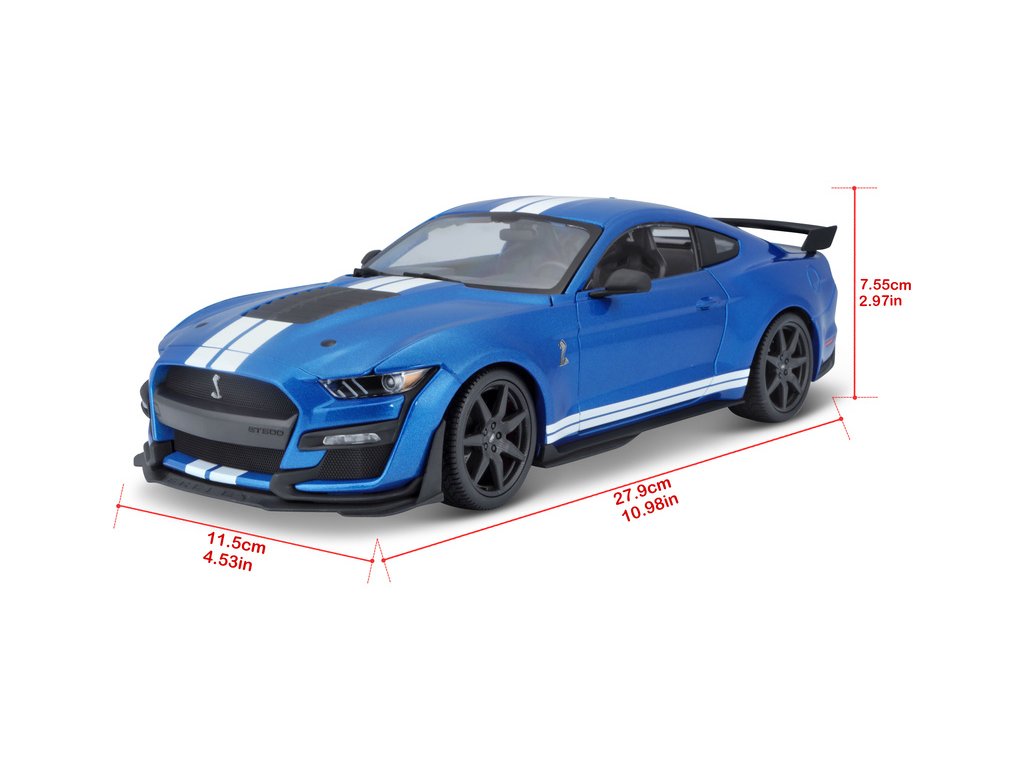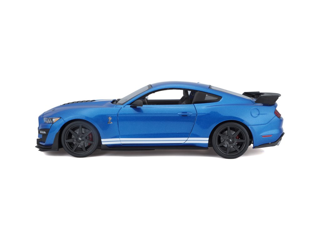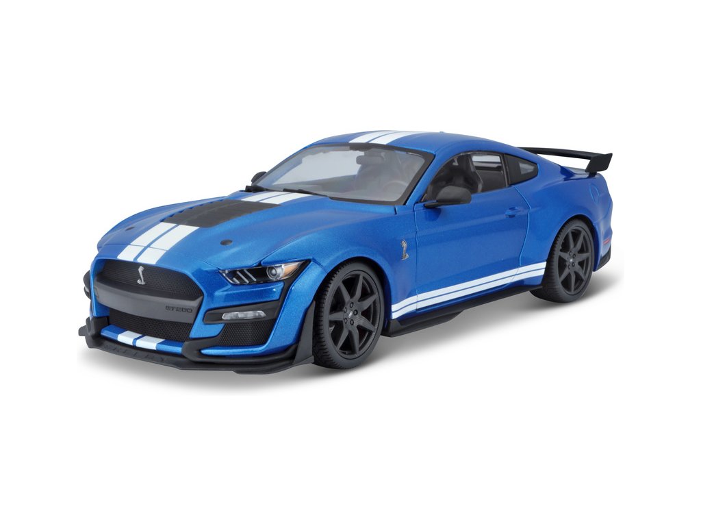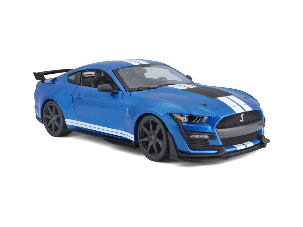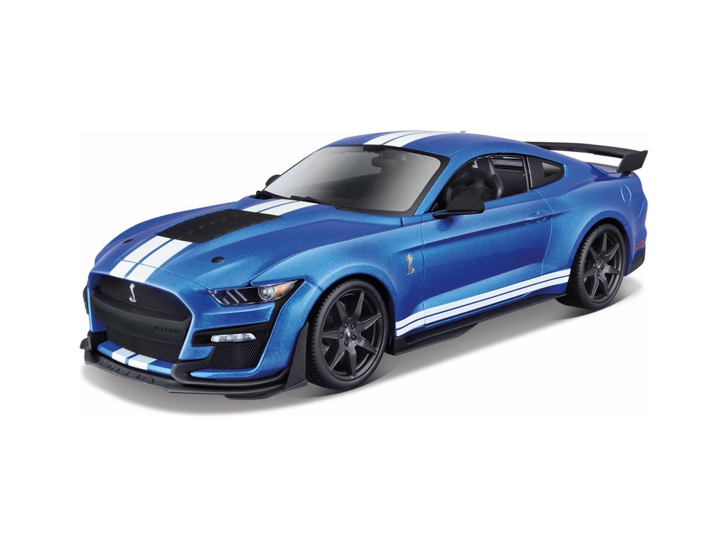 Kovový model auta 1:18 Maisto 31388 Ford Shelby GT500 2020 nejen pro sběratele. Model je v detailním provedení na plastovém podstavci. Barva modelu je modrá metalíza a je přibližně 27 cm velký.