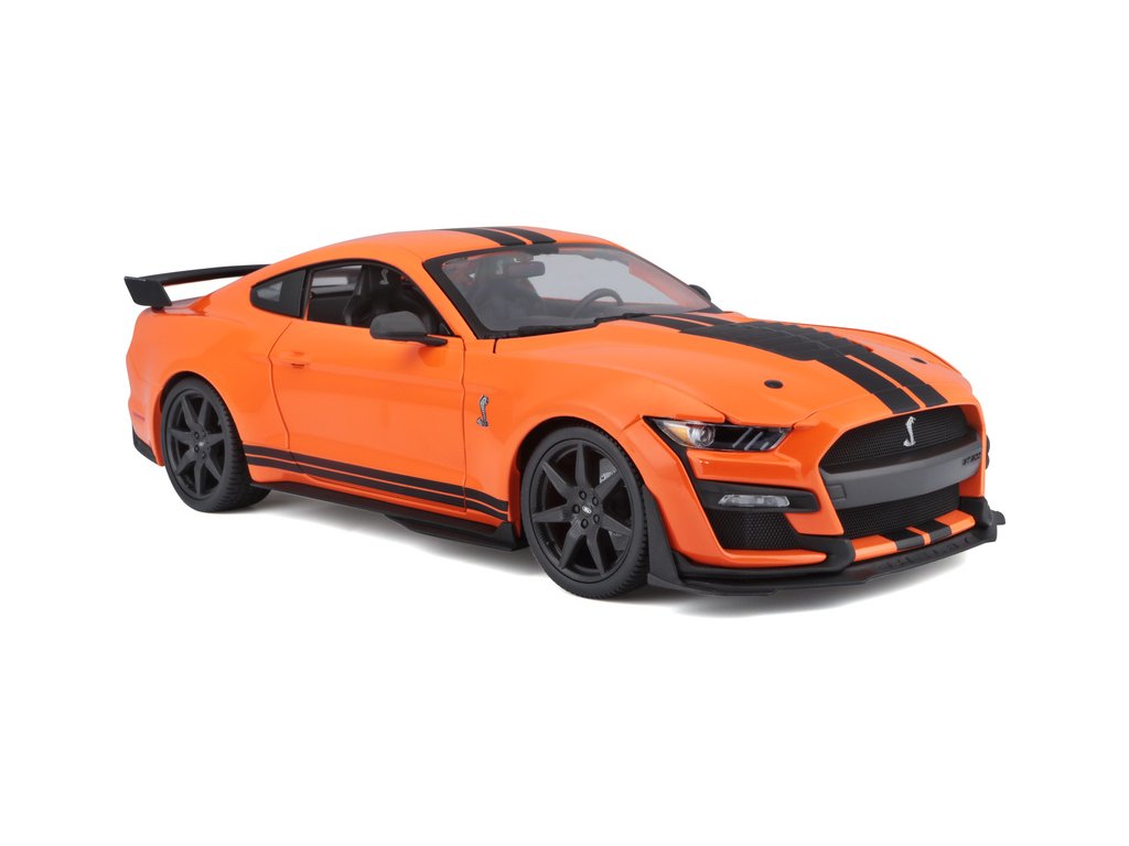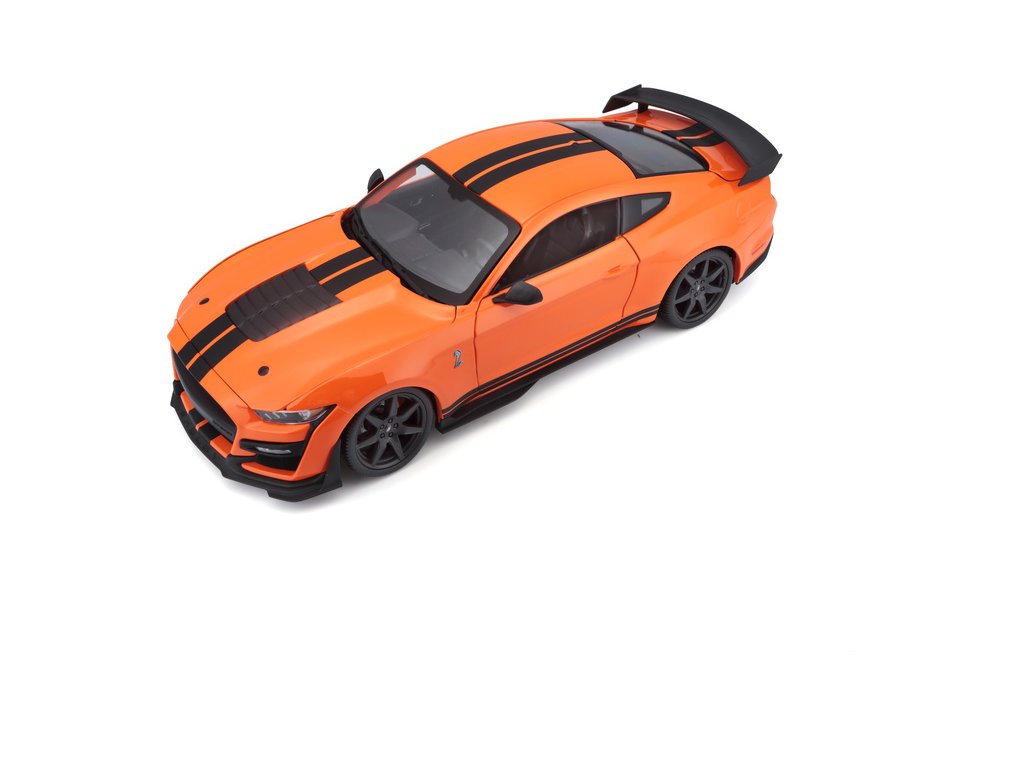 Kovový model auta 1:18 Maisto 31388 Ford Shelby GT500 2020 nejen pro sběratele. Model je v detailním provedení na plastovém podstavci. Barva modelu je oranžová.