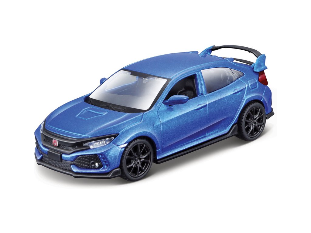 Kovový model Maisto 16915 Civic Typr R v měřítku 1:40 nejen pro sběratele. Detailní provedení, přívětivá cena, barva modrá metalíza, délka přibližně 11 cm. Model má otvíratelné dveře a obsahuje natahovací mechanismus.