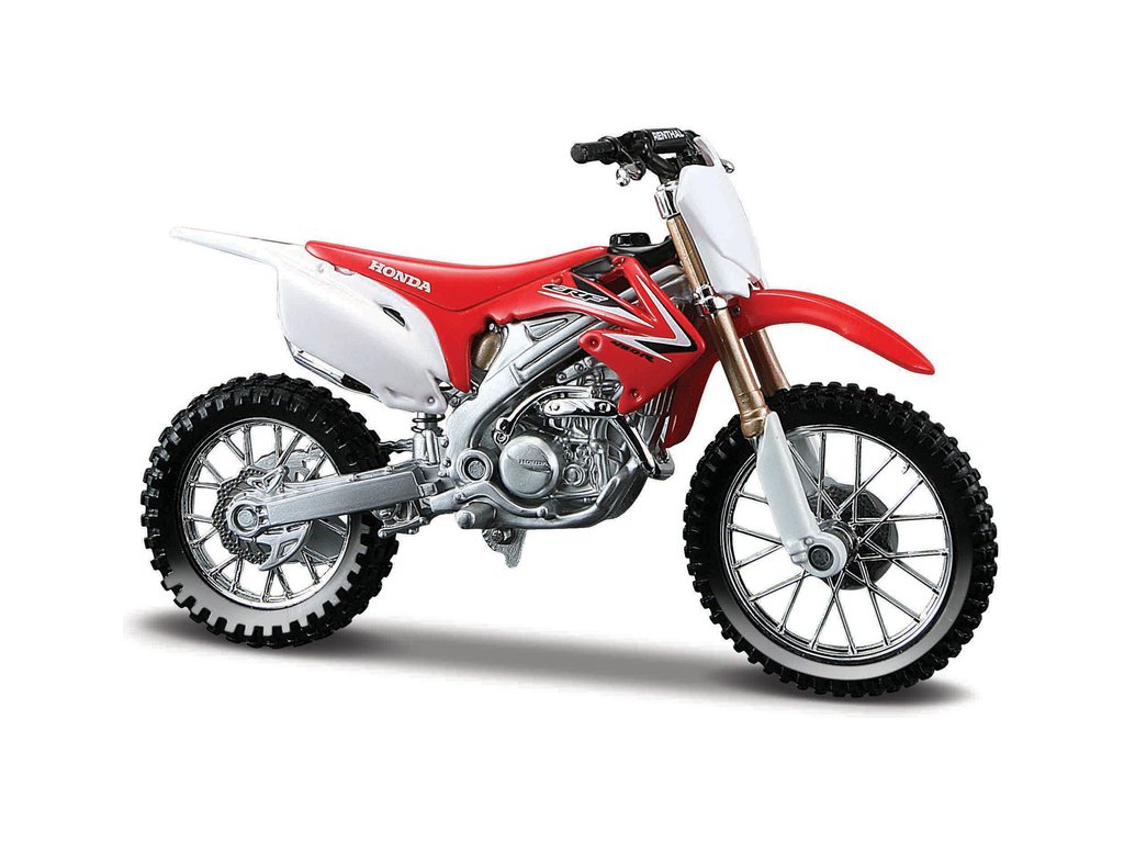 Model motokrosového motocyklu v měřítku 1:18 Maisto 10021 Honda CRF450R nejen pro sběratele. Detailní provedení, velmi přívětivá cena, délka přibližně 12 cm.