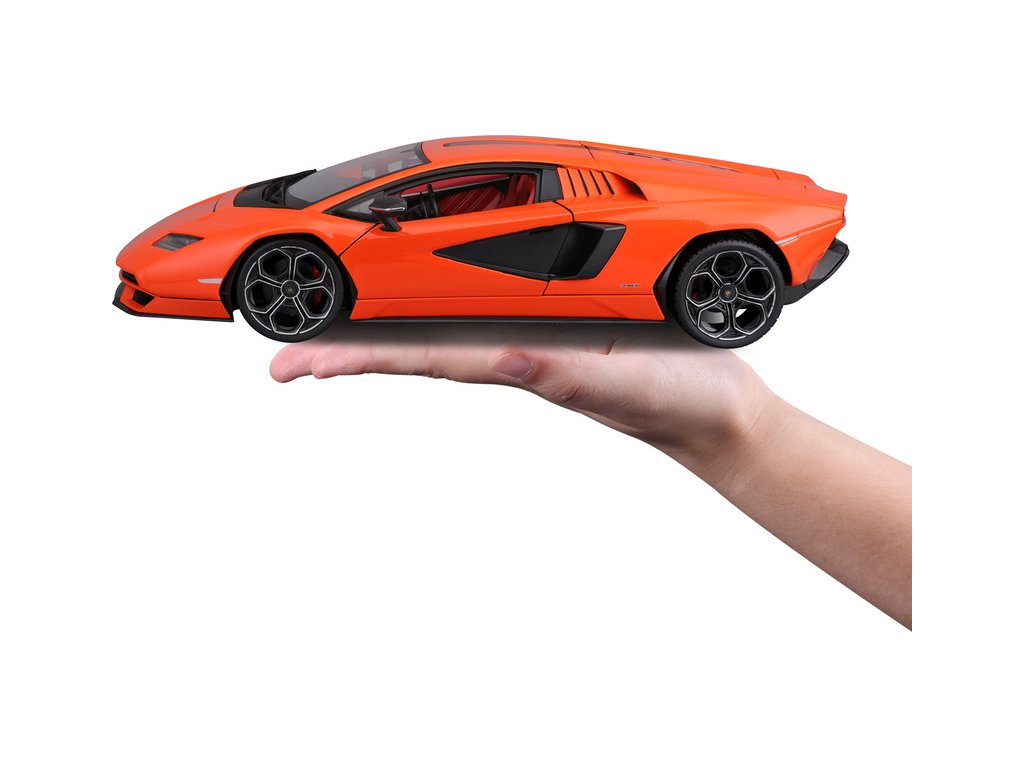Kovový model auta 1:18 Maisto 31459 Lamborghini Countach LPI 800-4 nejen pro sběratele. Model je v detailním provedení na plastovém podstavci. Barva modelu je oranžová a je přibližně 27 cm velký.