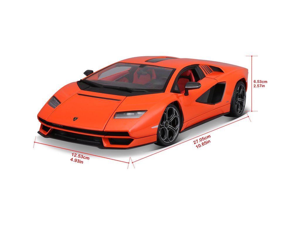 Kovový model auta 1:18 Maisto 31459 Lamborghini Countach LPI 800-4 nejen pro sběratele. Model je v detailním provedení na plastovém podstavci. Barva modelu je oranžová.