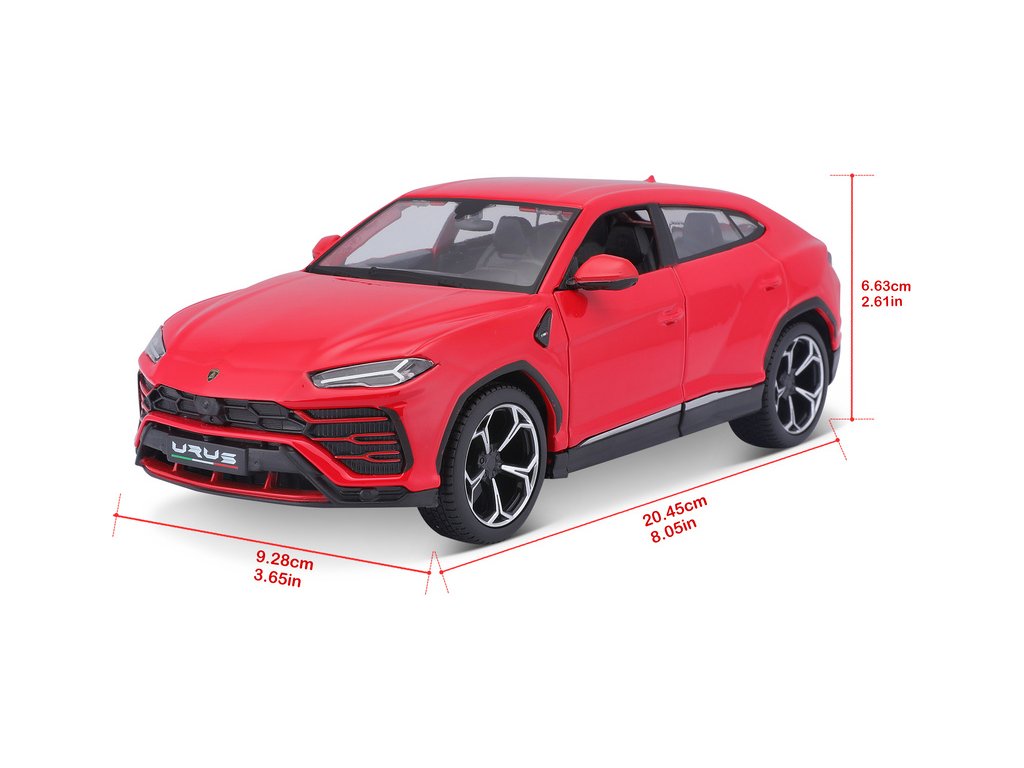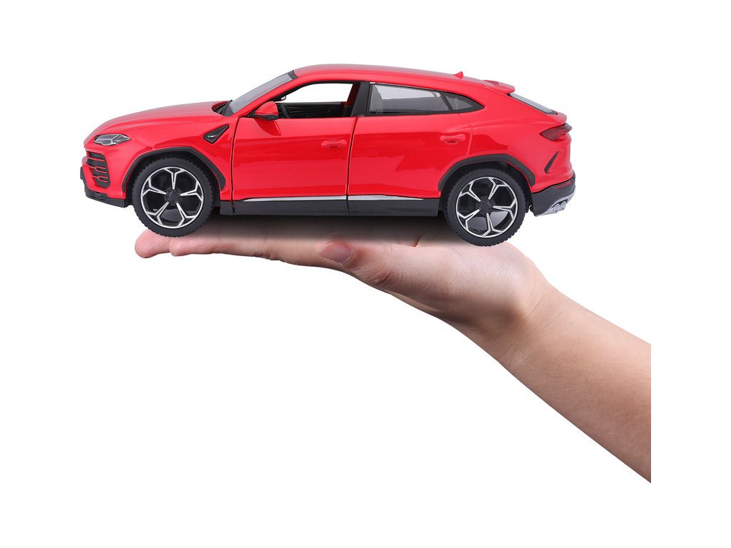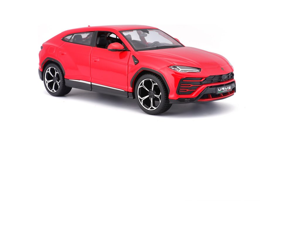 Kovový model auta 1:24 Maisto 31519 Lamborghini Urus nejen pro sběratele. Model je v detailním provedení a má otevíratelné dveře. Barva modelu je červená a je přibližně 19 cm velký.