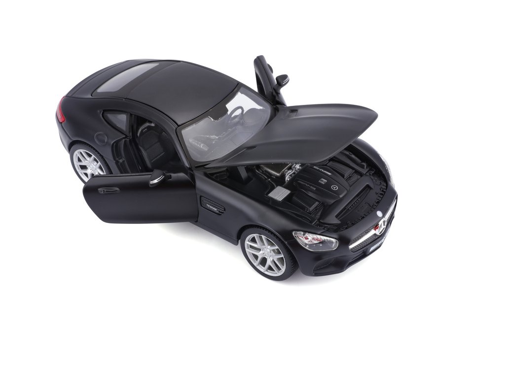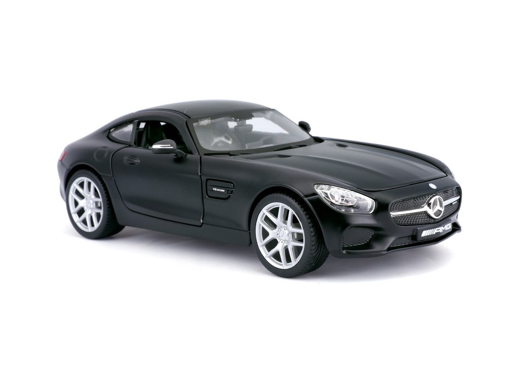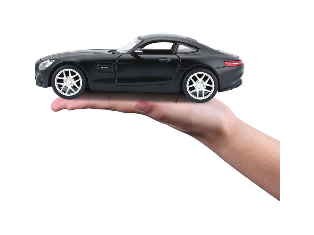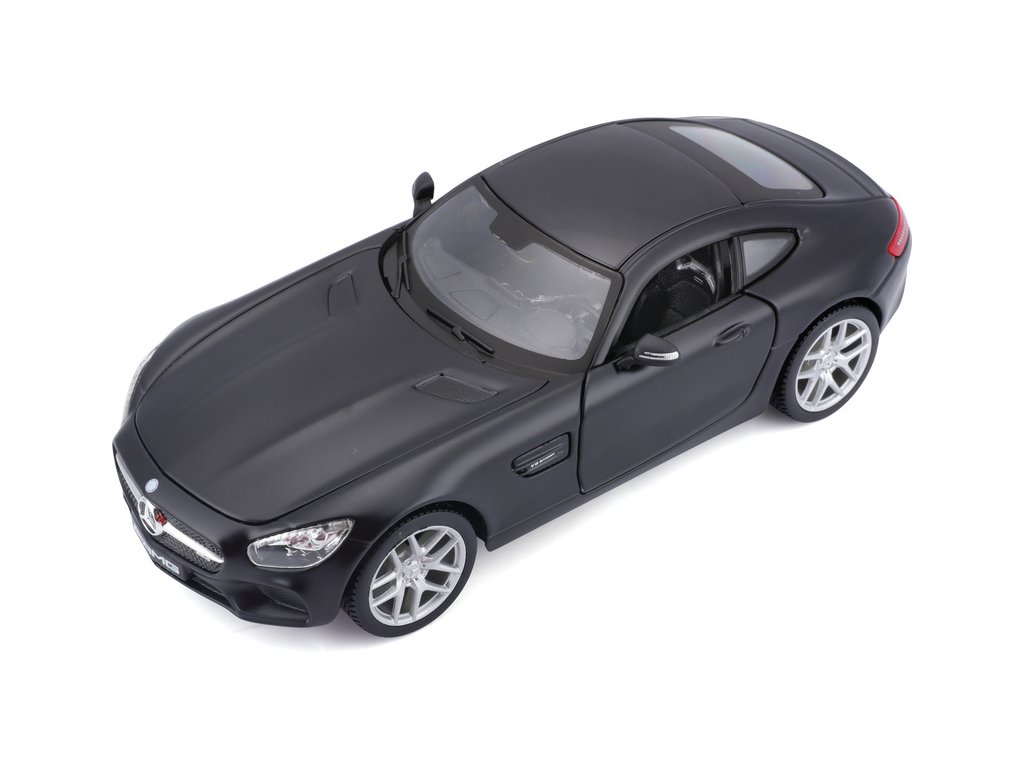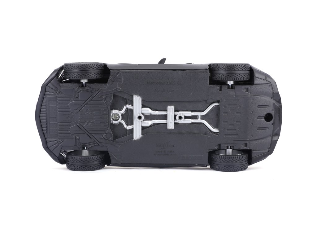 Kovový model auta 1:24 Maisto 31134 Mercedes-AMG GT nejen pro sběratele. Model je v detailním provedení a má otevíratelné dveře. Barva modelu je černá a je přibližně 19 cm velký.