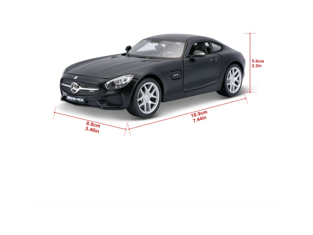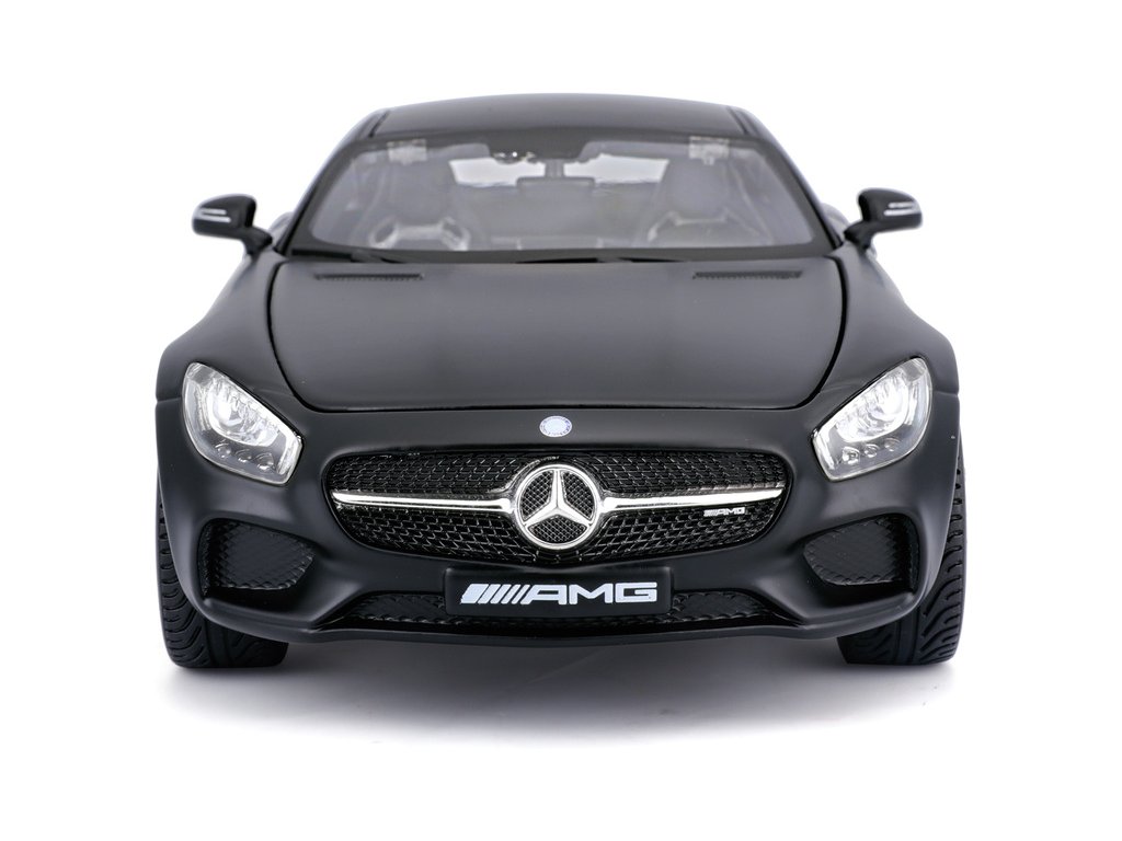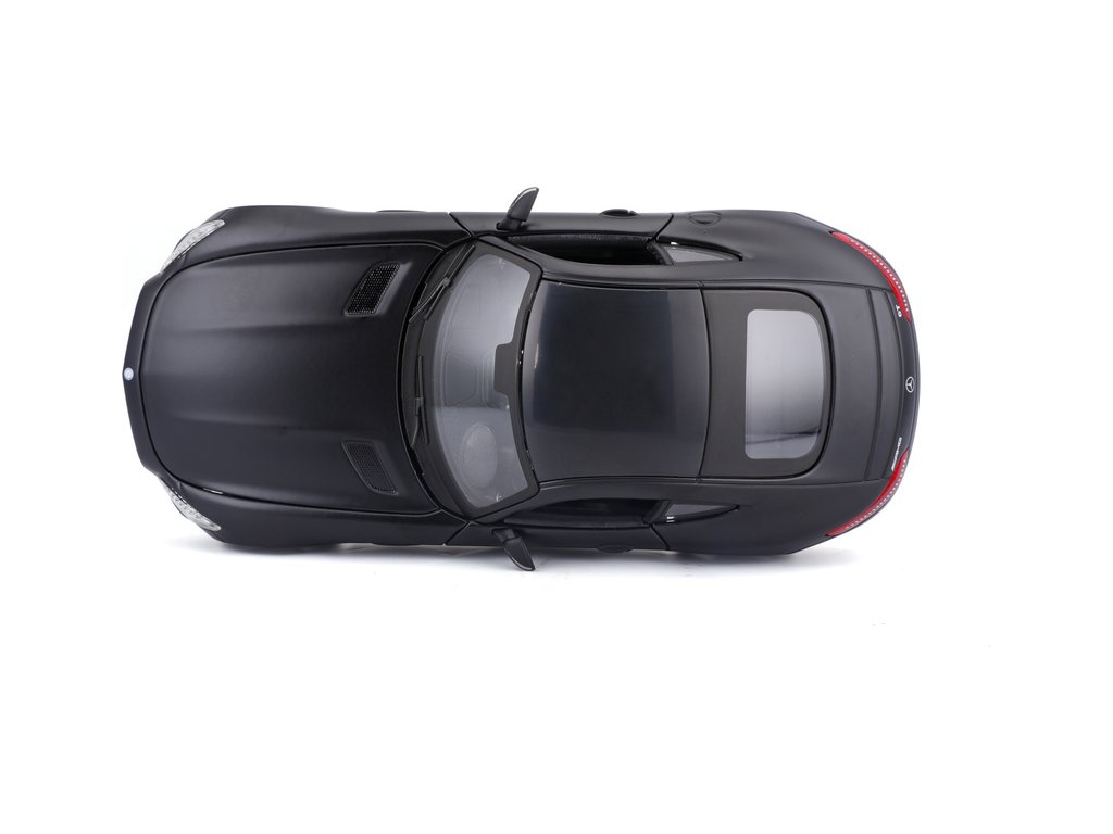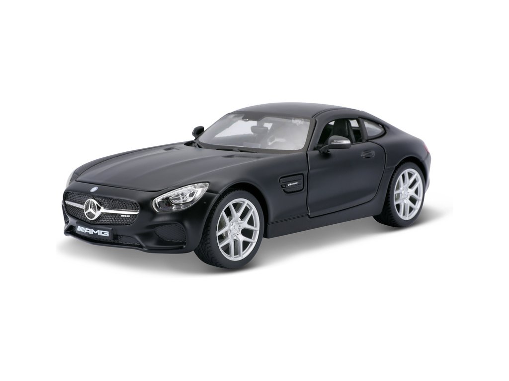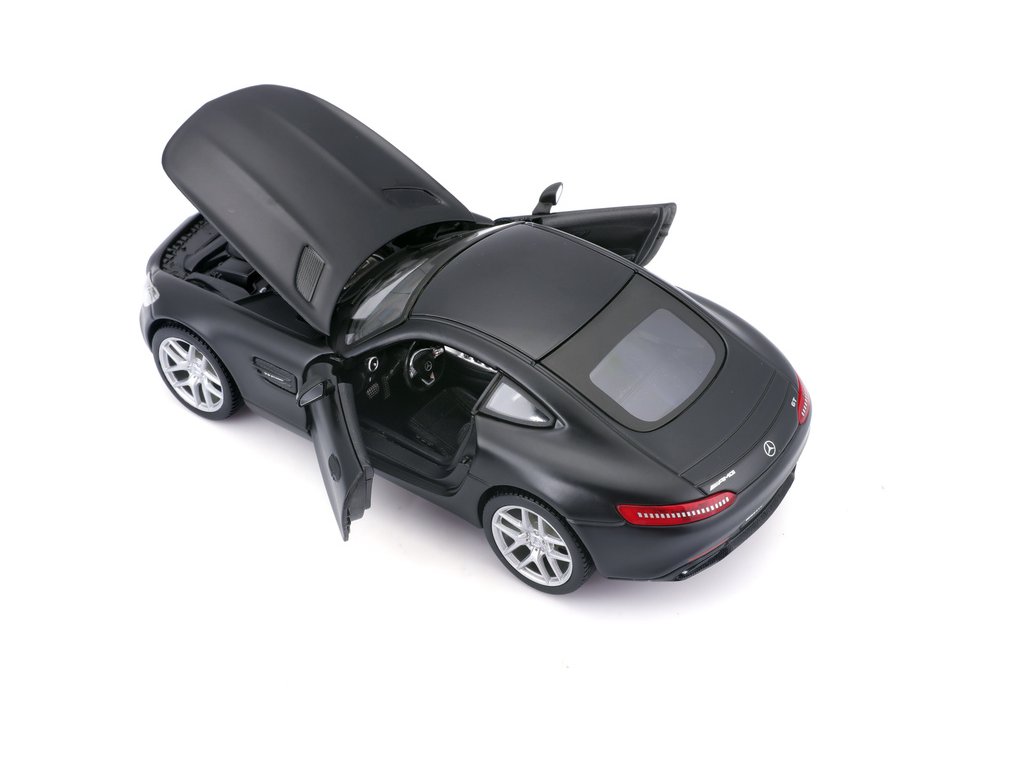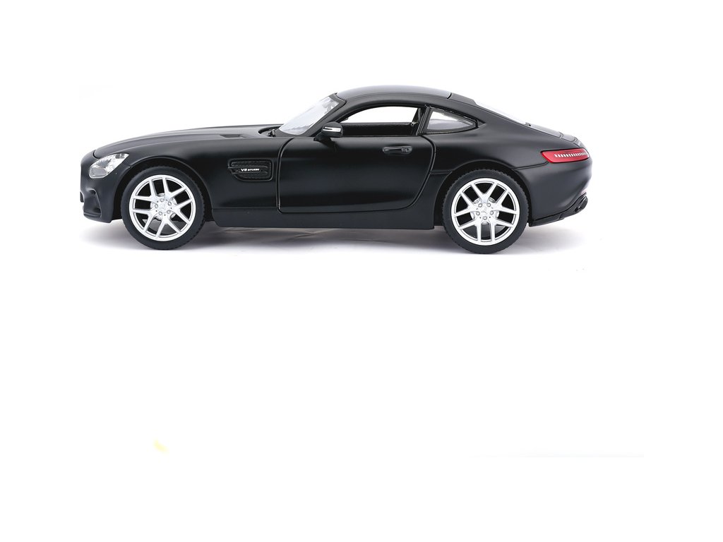 Kovový model auta 1:24 Maisto 31134 Mercedes-AMG GT nejen pro sběratele. Model je v detailním provedení a má otevíratelné dveře. Barva modelu je černá a je přibližně 19 cm velký.