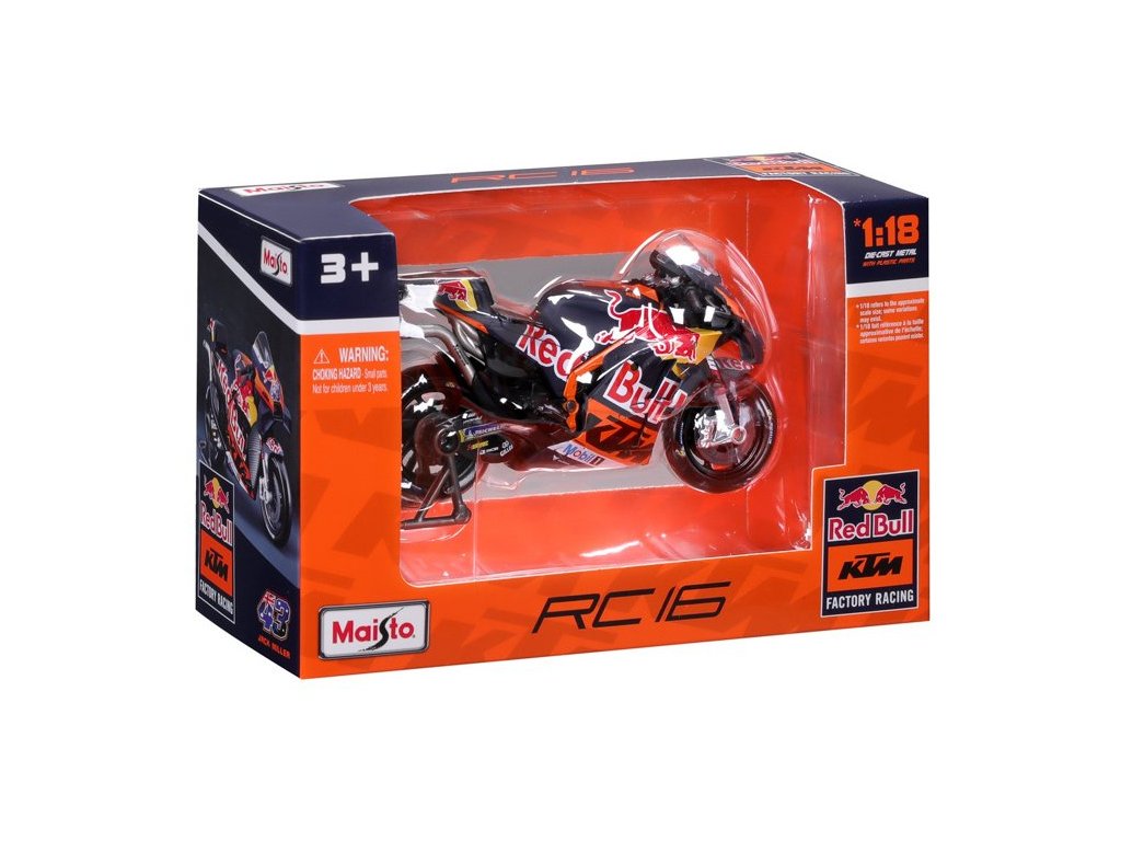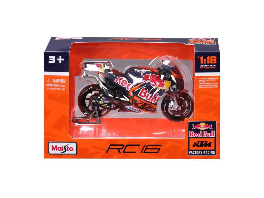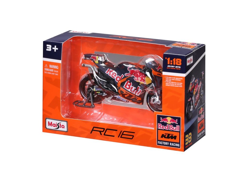 Model v měřítku 1:18 Maisto 36393 závodního motocyklu Maisto Red Bull KTM Factory Racing 2023 #33 Binder nejen pro sběratele. Detailní provedení, velmi přívětivá cena, délka 12 cm.
