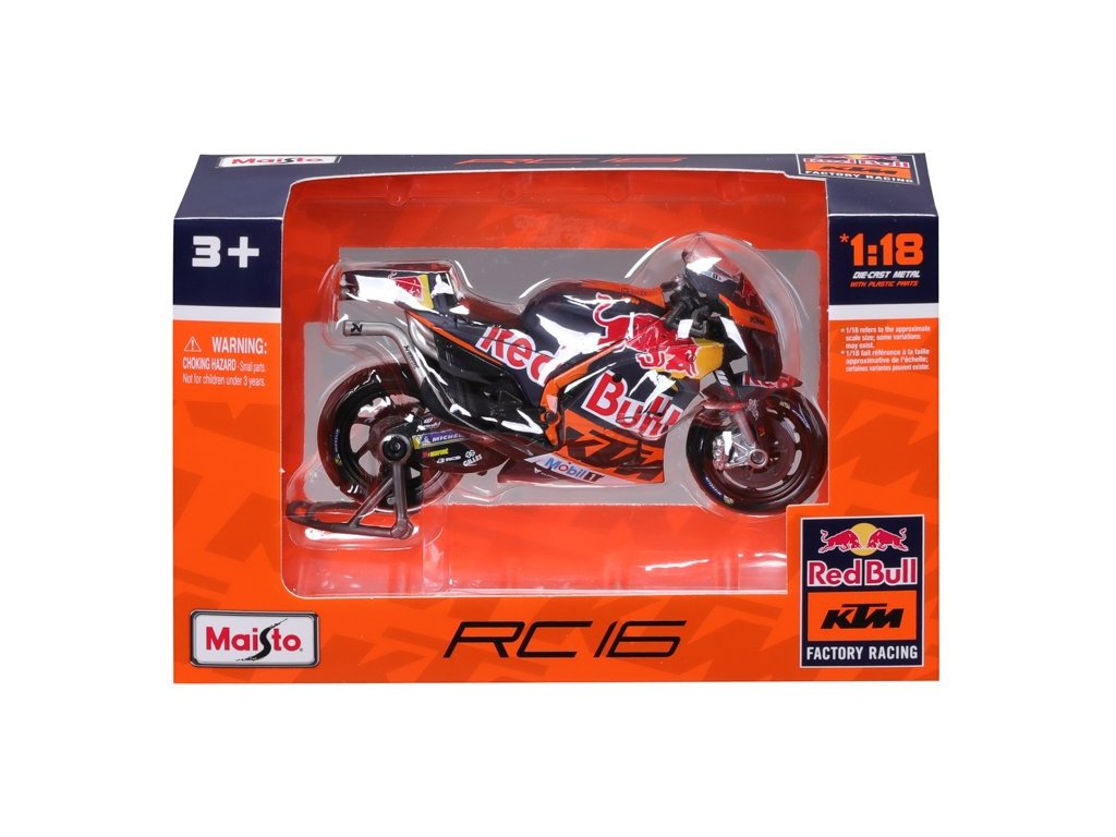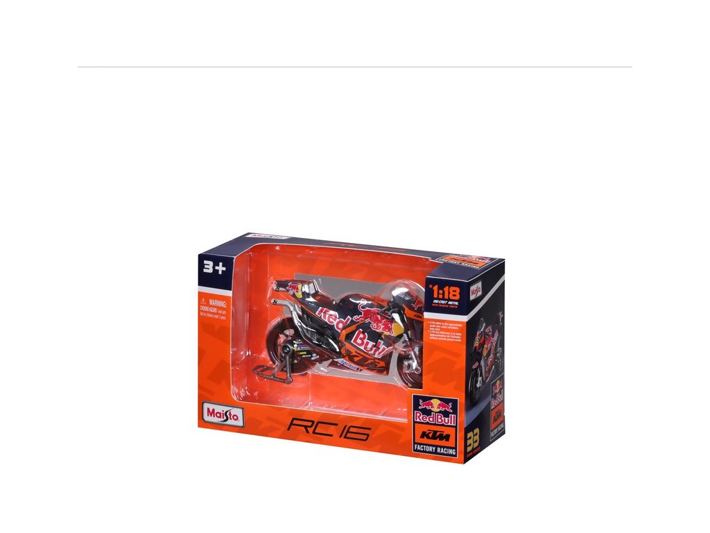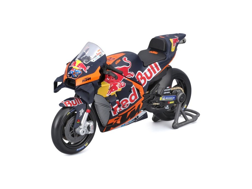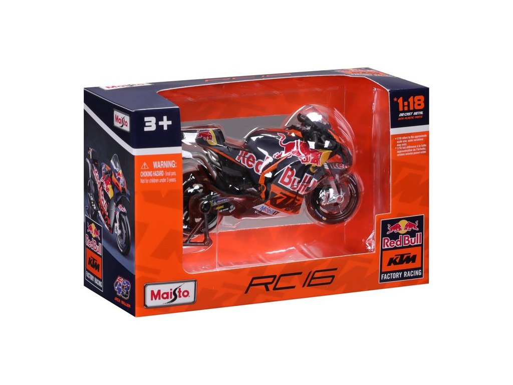 Model v měřítku 1:18 Maisto 36393 závodního motocyklu Maisto Red Bull KTM Factory Racing 2023 #43 Miller nejen pro sběratele. Detailní provedení, velmi přívětivá cena, délka 12 cm.