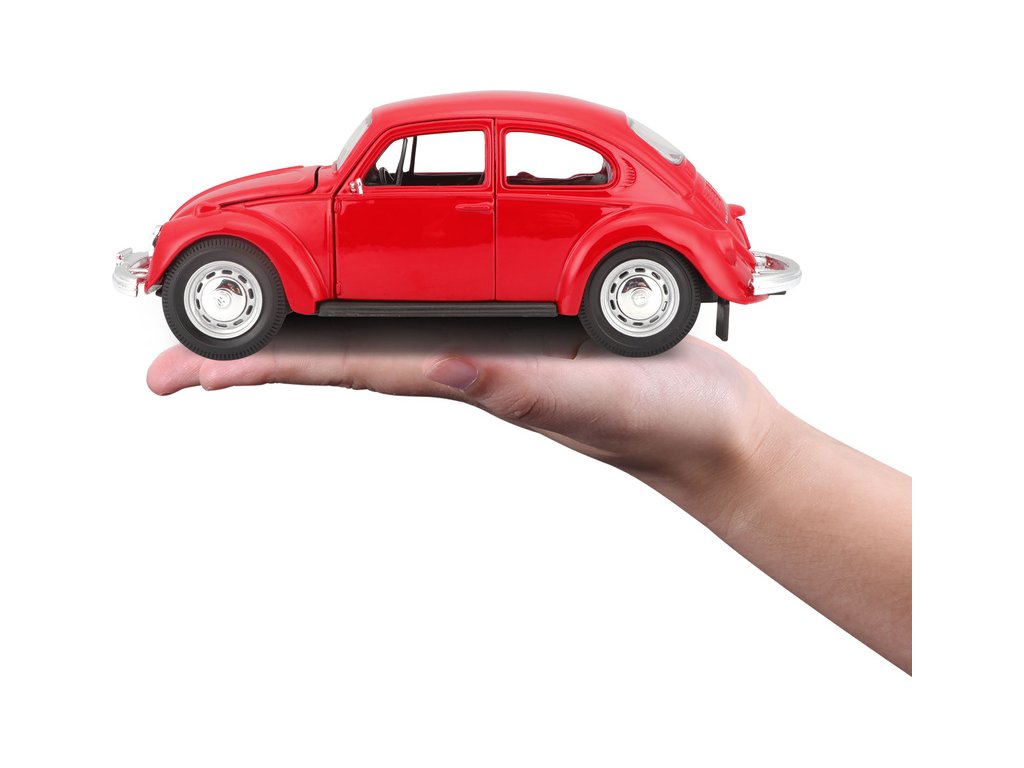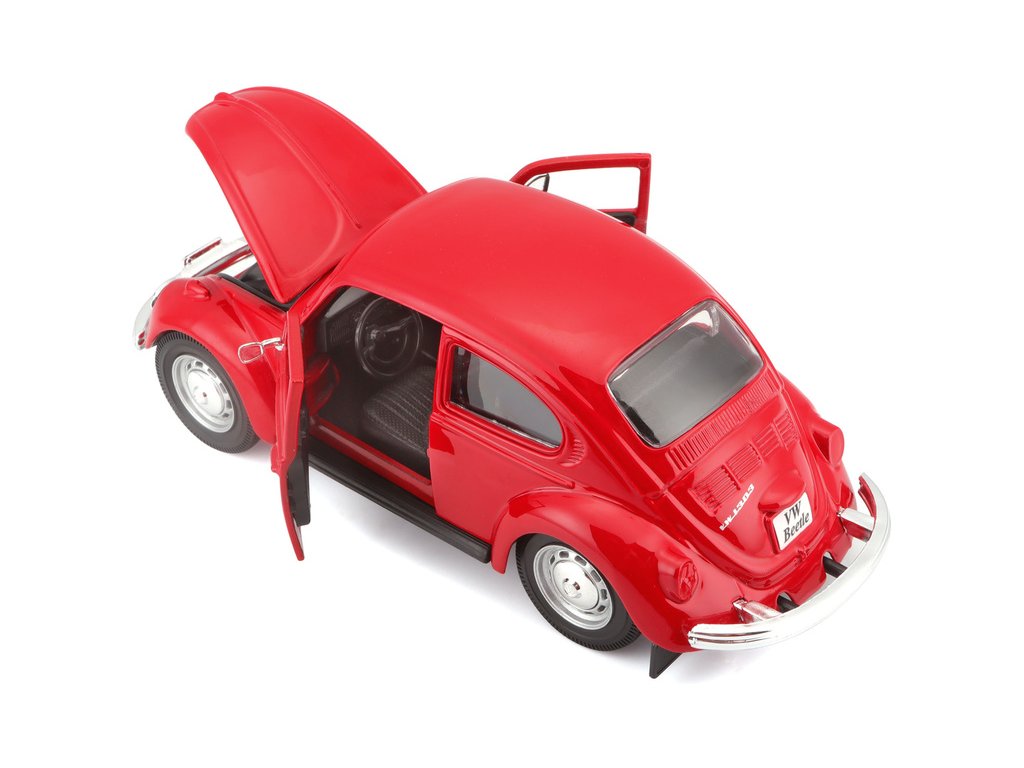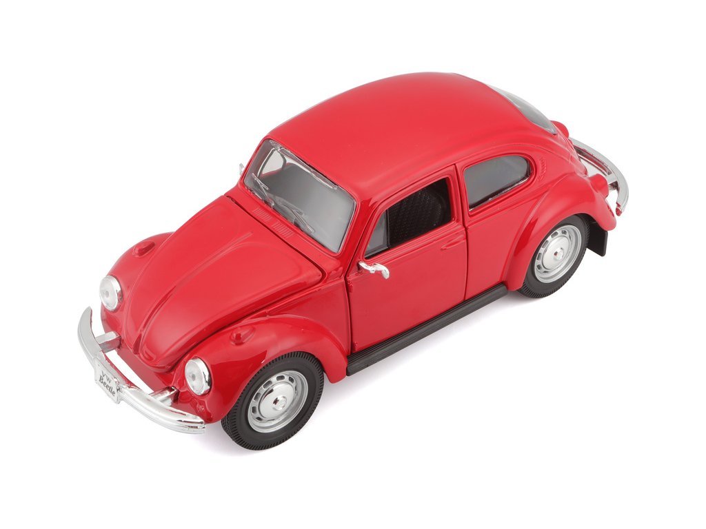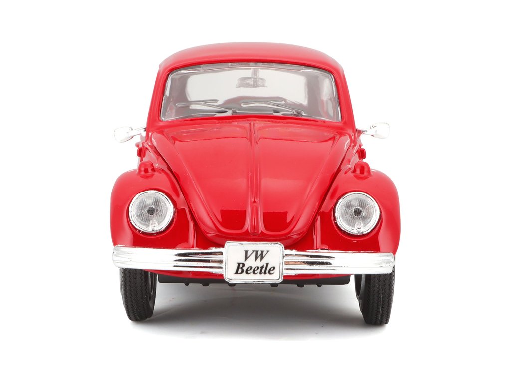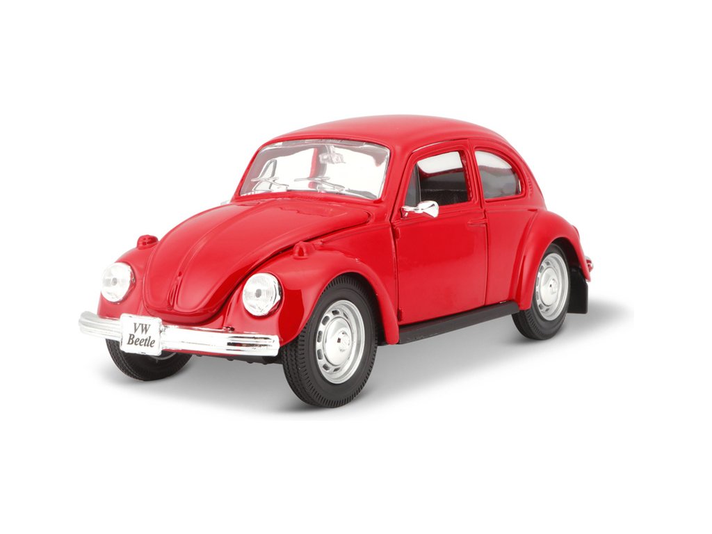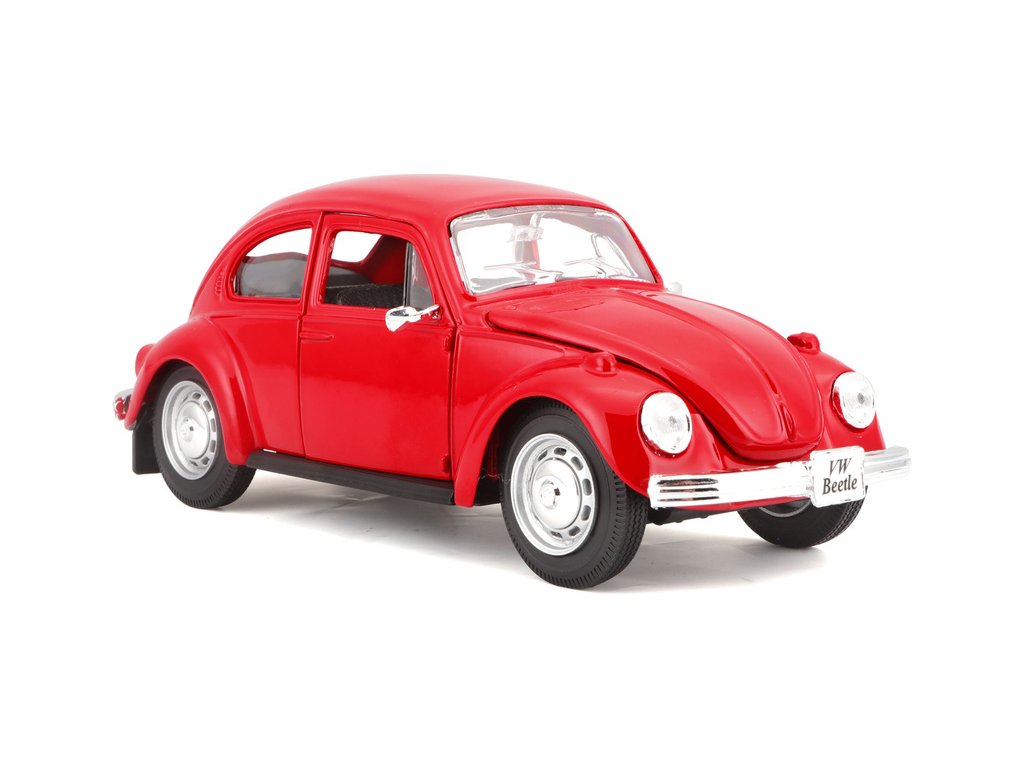 Kovový model auta 1:24 Maisto 31926 Volkswagen Beetle nejen pro sběratele. Model je v detailním provedení a má otevíratelné dveře. Barva modelu je červená a je přibližně 17 cm velký.