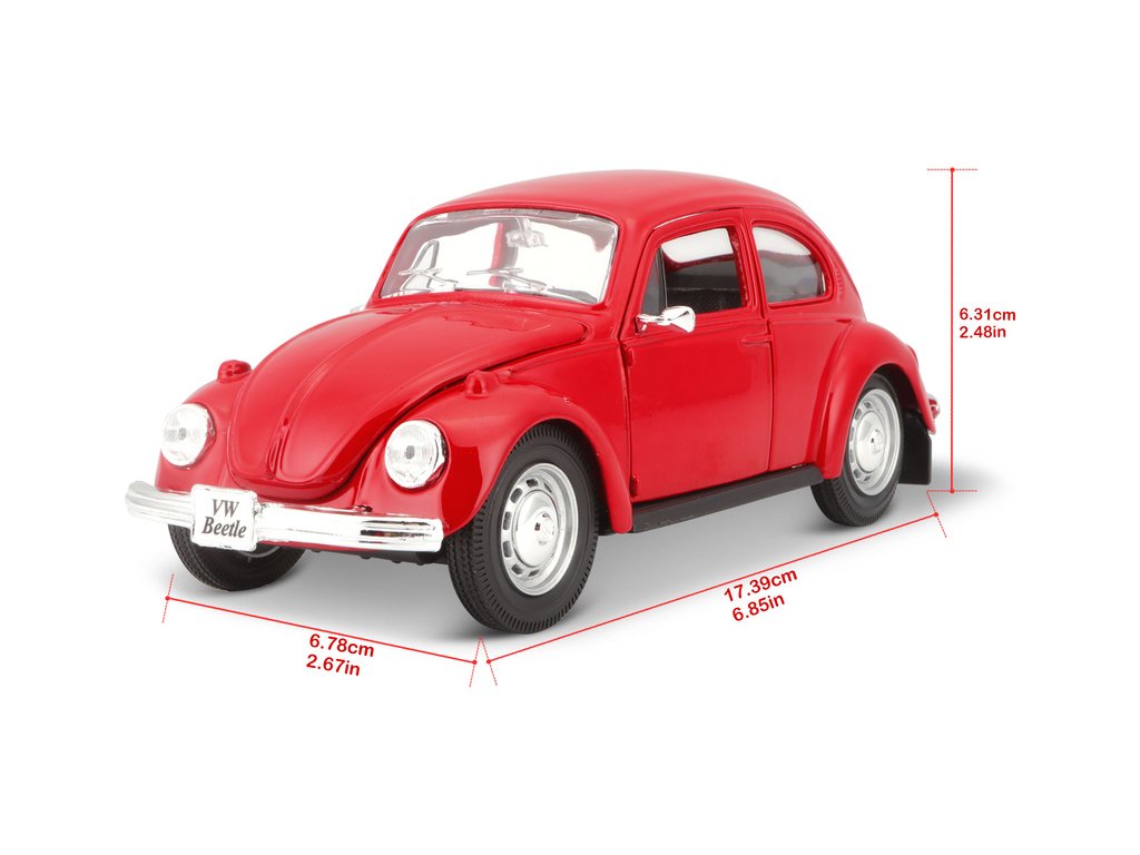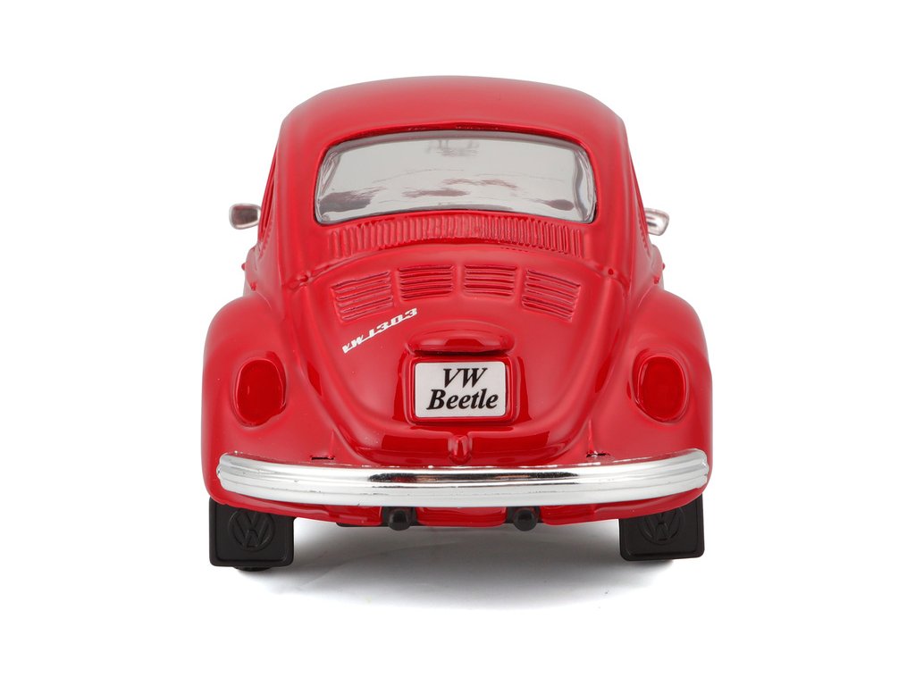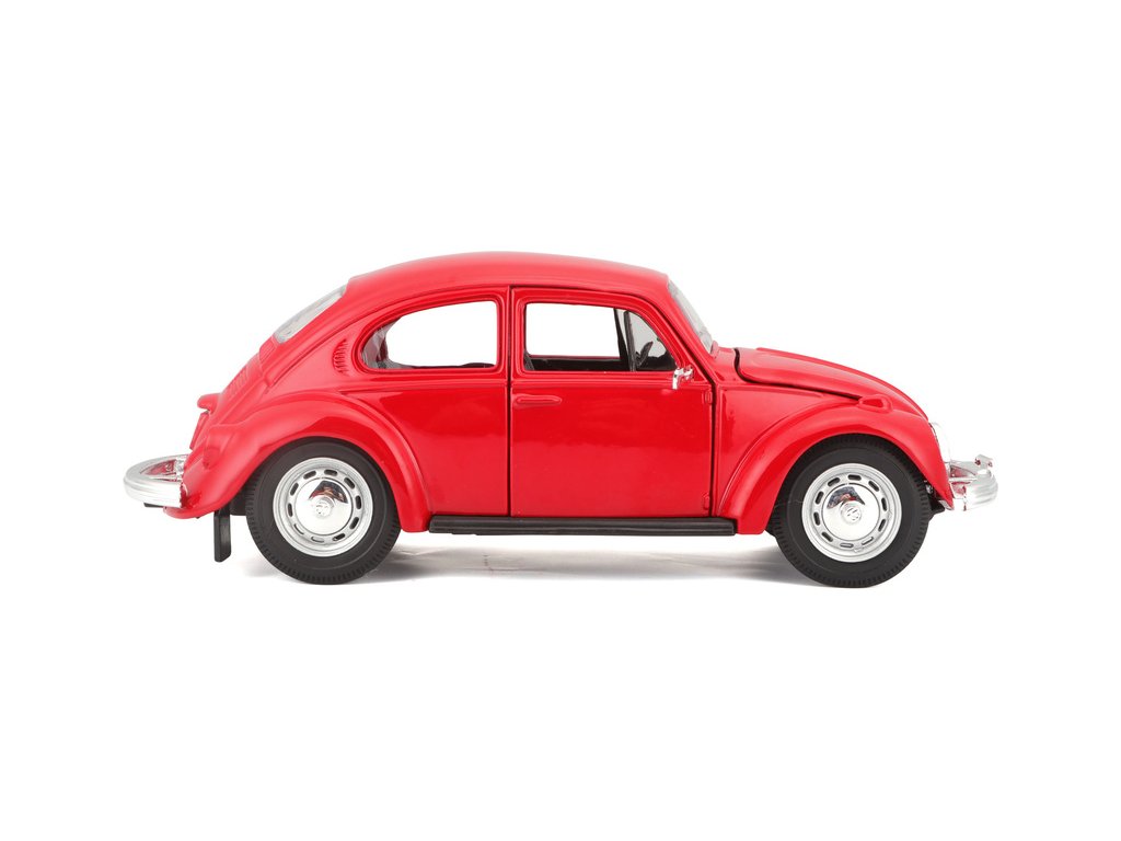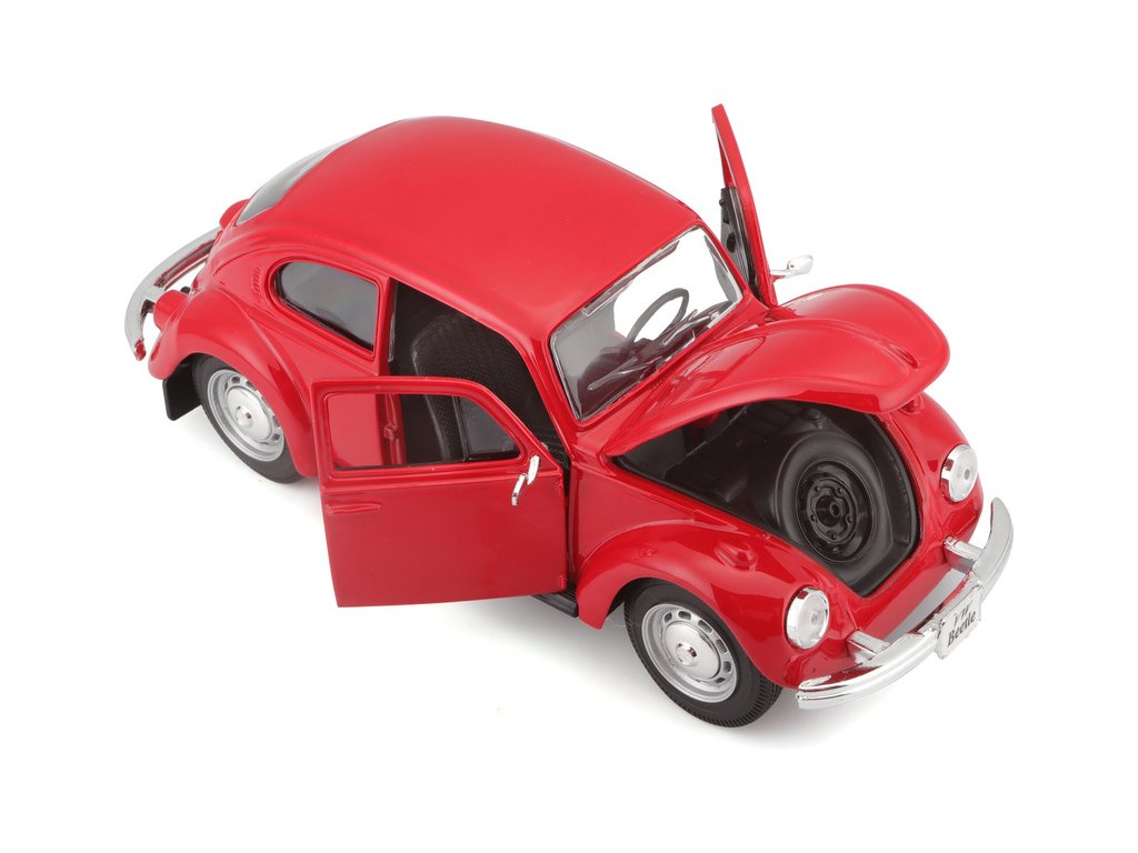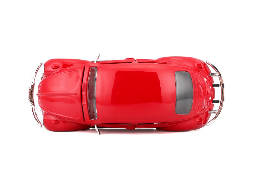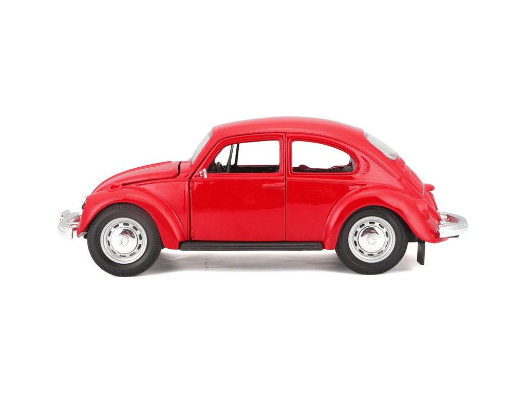 Kovový model auta 1:24 Maisto 31926 Volkswagen Beetle nejen pro sběratele. Model je v detailním provedení a má otevíratelné dveře. Barva modelu je červená a je přibližně 17 cm velký.