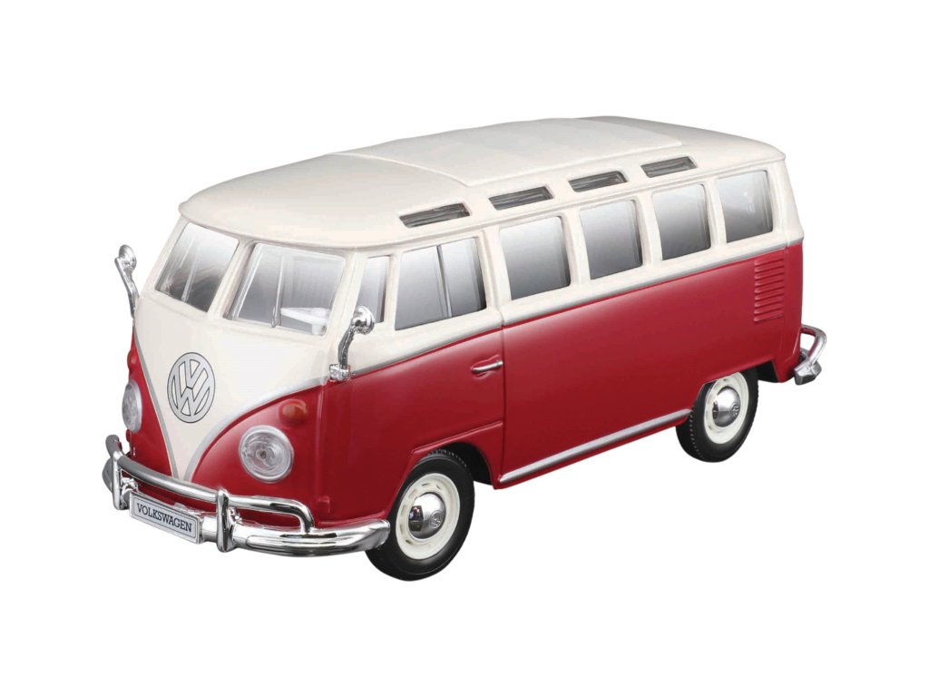 Kovový model auta 1:25 Maisto 39956R Kit Volkswagen Van Samba nejen pro sběratele. Model je ve verzi Kit určené k sestavení. Je přibližně 17 cm velký.