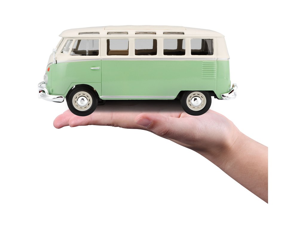 Kovový model auta 1:25 Maisto 31956 Volkswagen Van Samba nejen pro sběratele. Model je v detailním provedení a má otevíratelné dveře. Barva modelu je zeleno/krémová a je přibližně 19 cm velký.