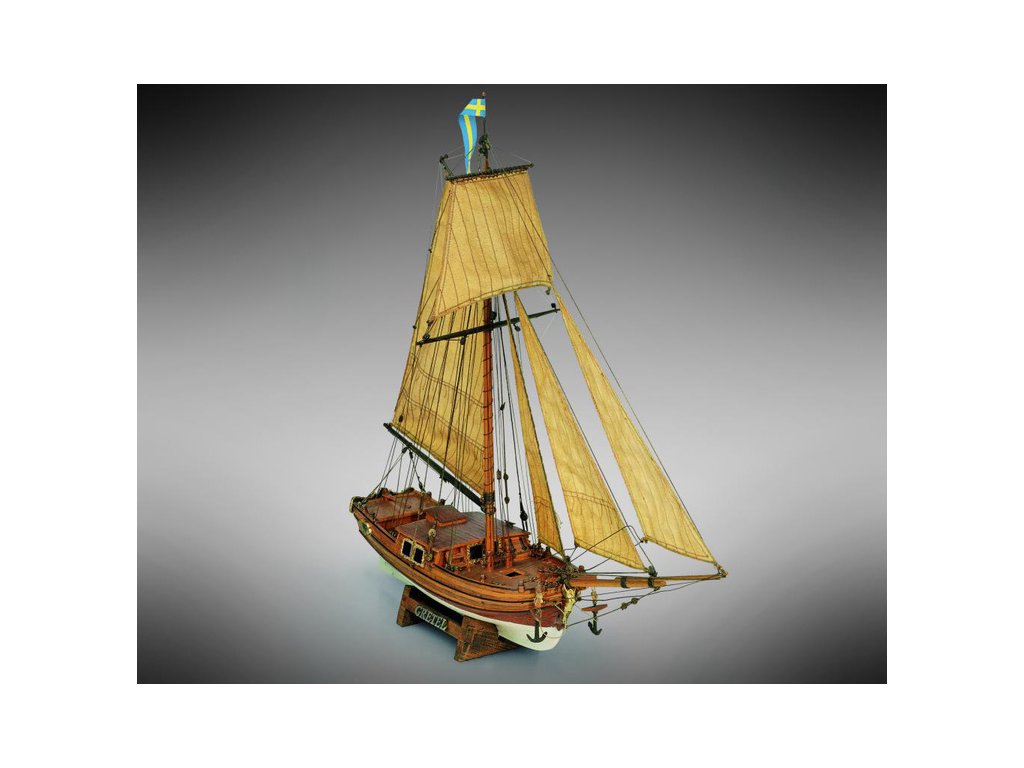 Stavebnice neplovoucího modelu MAMOLI Gretel v měřítku 1:54 z poloviny 18. stol. Gretel byl postaven podle plánů Fredrika Af Chapmana a je zvláště úspěšným představitelem výletních plavidel s rysy moderních lodí. V balení jsou dřevěné díly, lišty a množství kování, lanoví, český návod, plány atd.