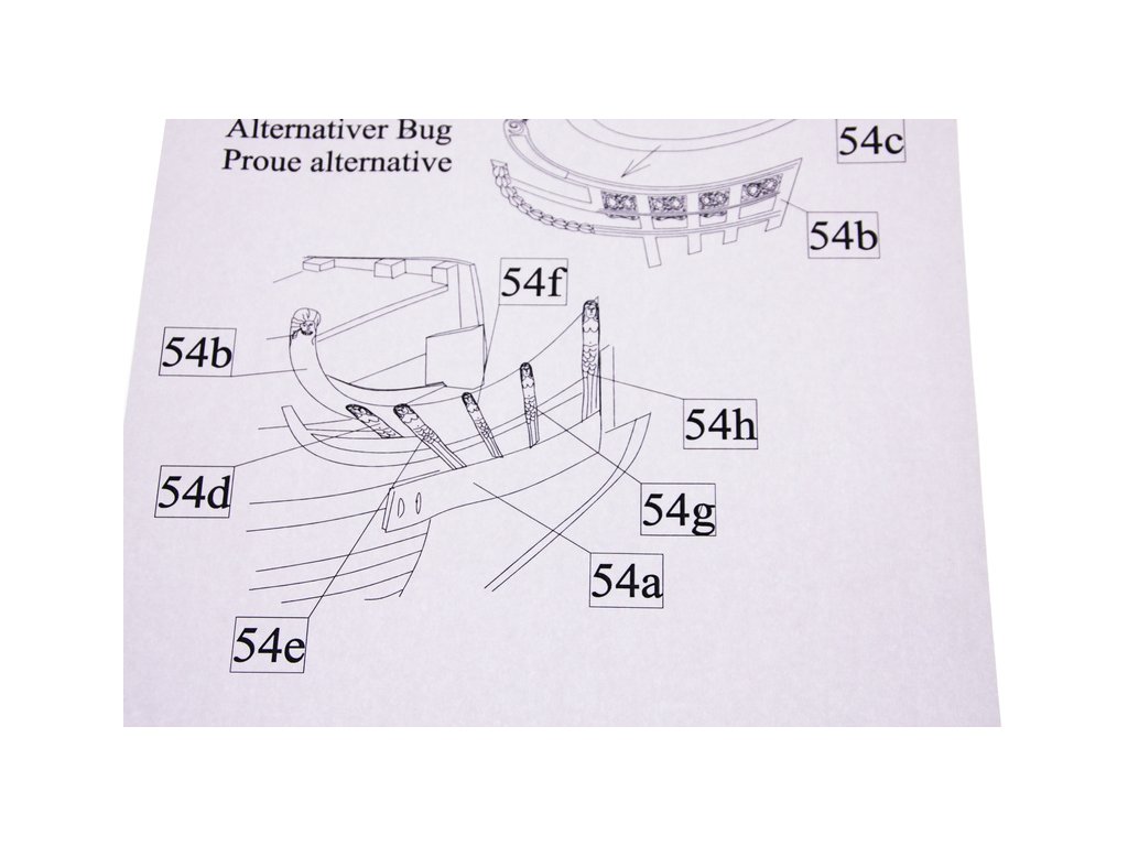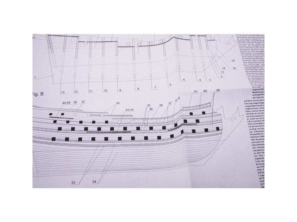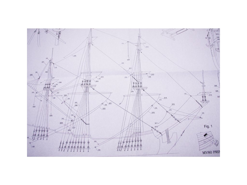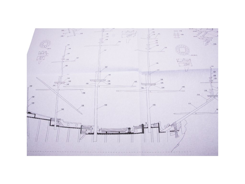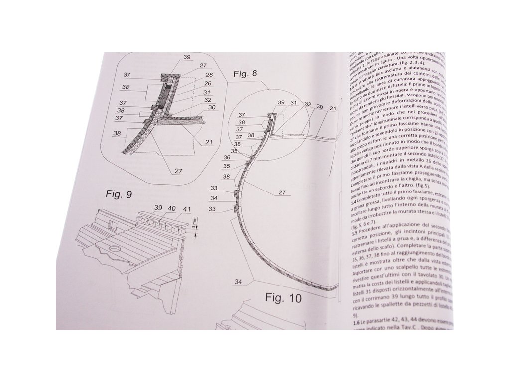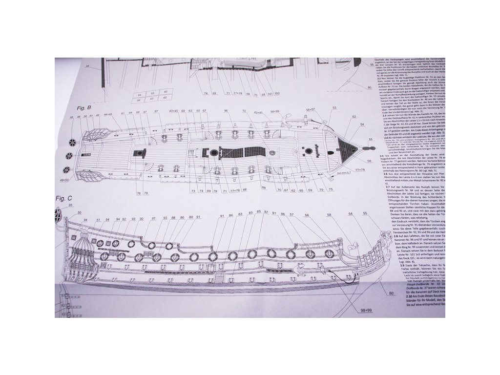 Balení obsahuje sadu překližkových dílů, sadu dřevěných lišt o různém průřezu, blistr s drobnými díly, sadu výkresů a manuál anglický, německý, francouzský a italský.